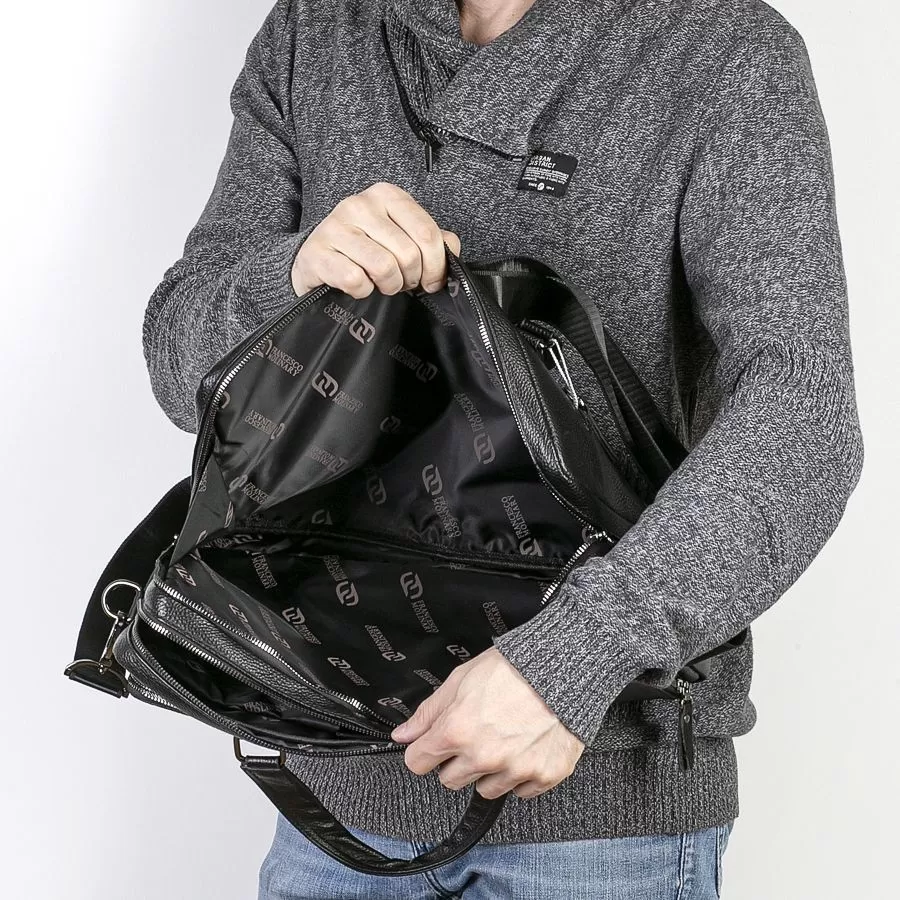 - Кроме ноутбука, сумка свободно вмещает в себя документы, зонт