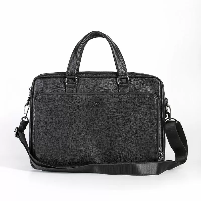 - Функционал деловой сумки значительно расширен за счет внешних карманов. Вы сможете расположить документы формата А5 и А4 во внешнем отделении на молнии