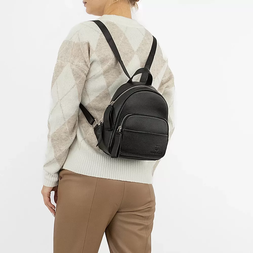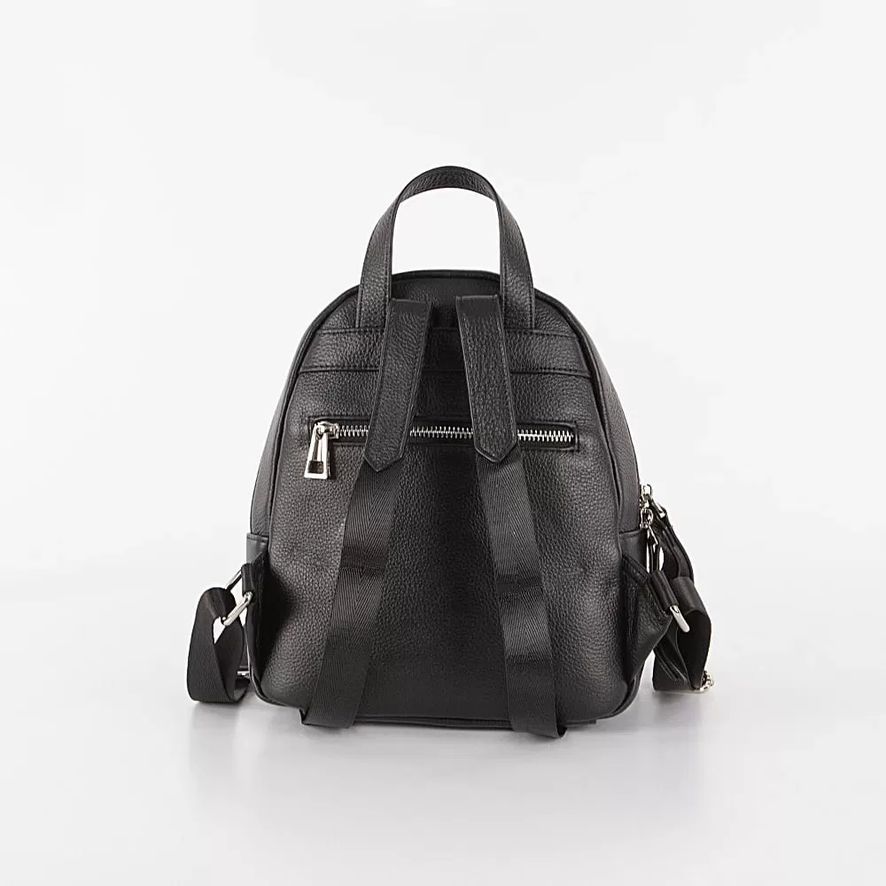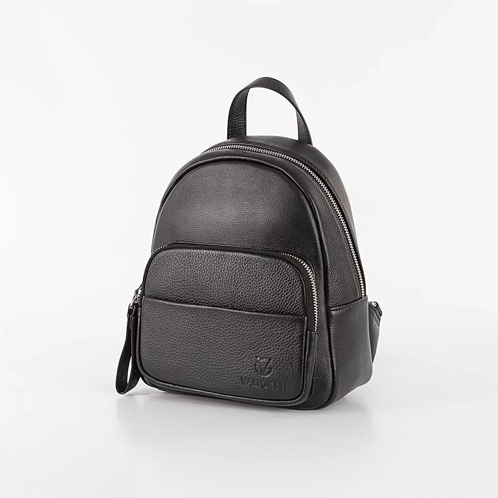 Рюкзак от Valigetti, известного бренда, выполнен из натуральной кожи черного цвета. Модель оснащена удобной лямкой для переноски и регулируемыми плечевыми лямками, что позволяет комфортно носить его на спине. Внутри есть отделение на молнии, а также фирменная подкладка.