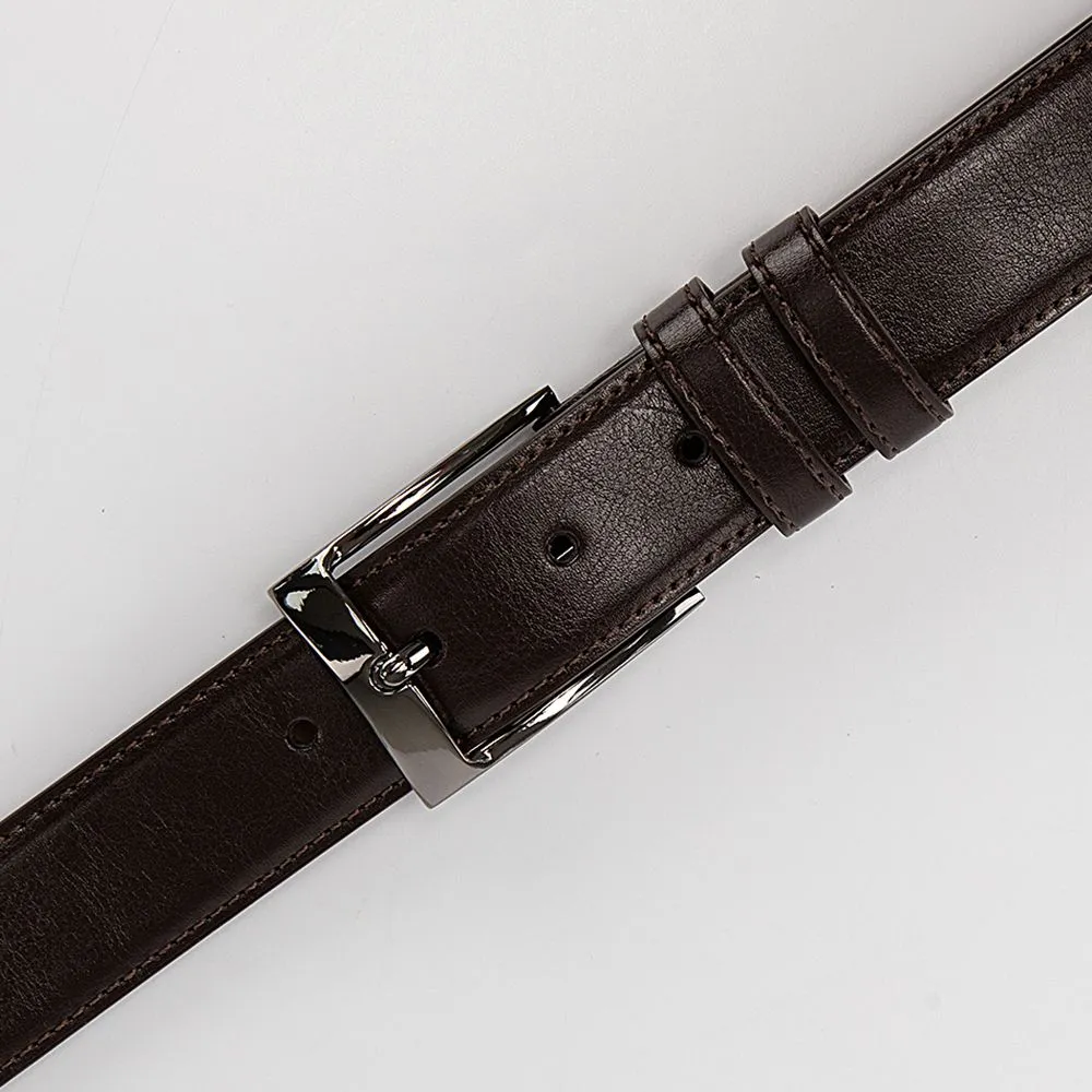 Классический ремень под брюки от торговой марки Francesco Molinary из натуральной кожи коричневого цвета. Модель шириной 35 мм, длина 111-115 см; с металлической пряжкой, с двумя шлевками для дополнительной фиксации.