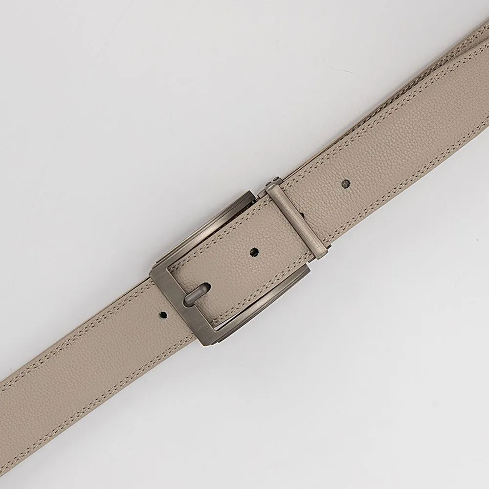 Мужской ремень от торговой марки Francesco Molinary из натуральной кожи светло-серого цвета. Модель с металлической пряжкой и шлевкой, двойной строчкой по краям; ширина: 3,3 см, длина: 105-110 см.