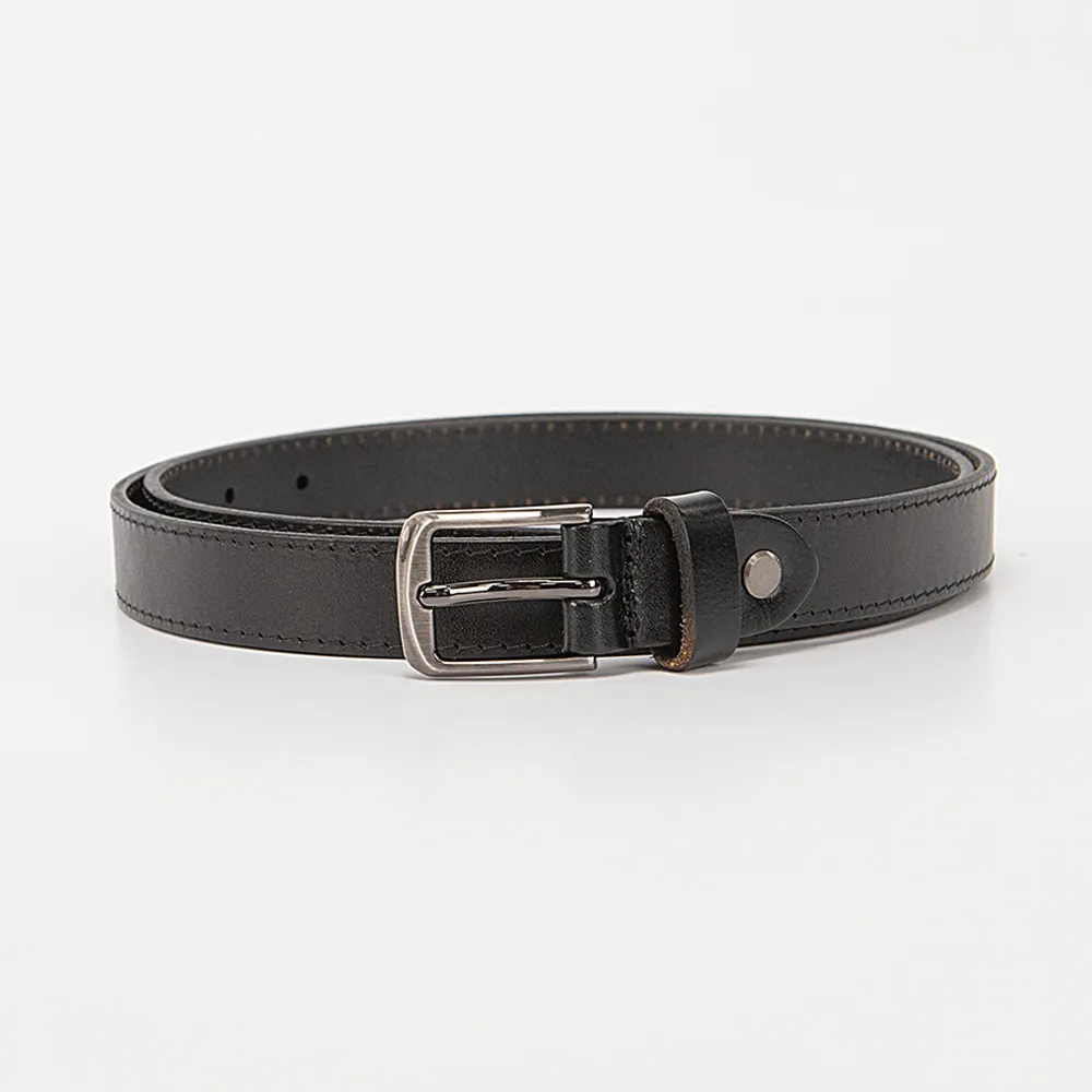 Женский ремень от торговой марки Poshete из натуральной кожи черного цвета. Модель шириной 25 мм, длиной 95-105 см, с одной шлевкой и металлической пряжкой.