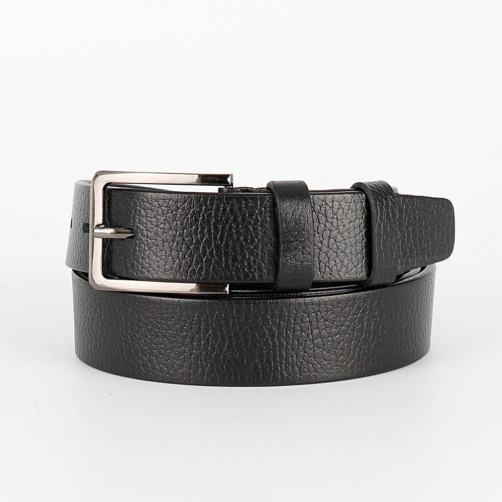 Ремень от торговой марки Poshete из натуральной кожи черного цвета. Модель шириной 35 мм, длиной 110-135 см, с квадратной металлической пряжкой.