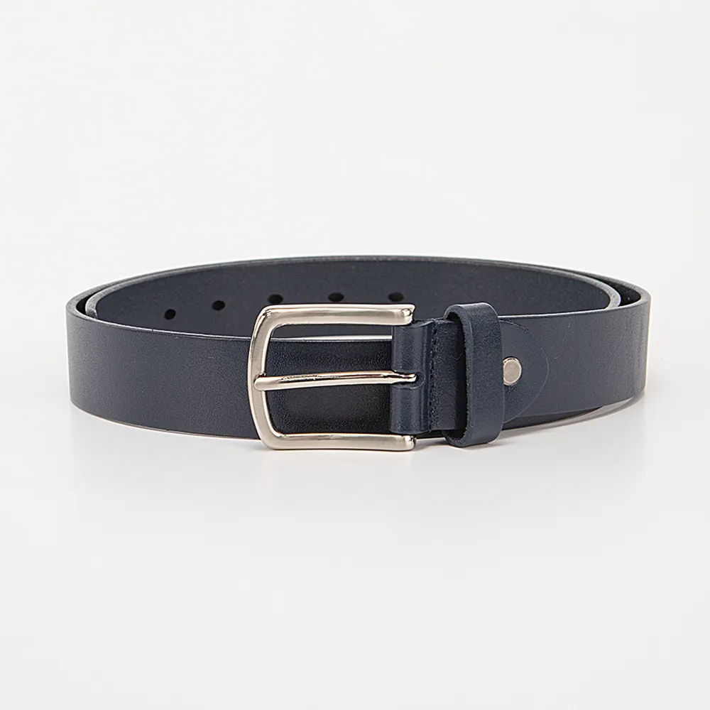 Ремень от торговой марки Poshete из натуральной кожи темно-синего цвета. Модель длиной 111-115 см, шириной 3,5 см. Металлическая пряжка; шлевка для фиксации.
