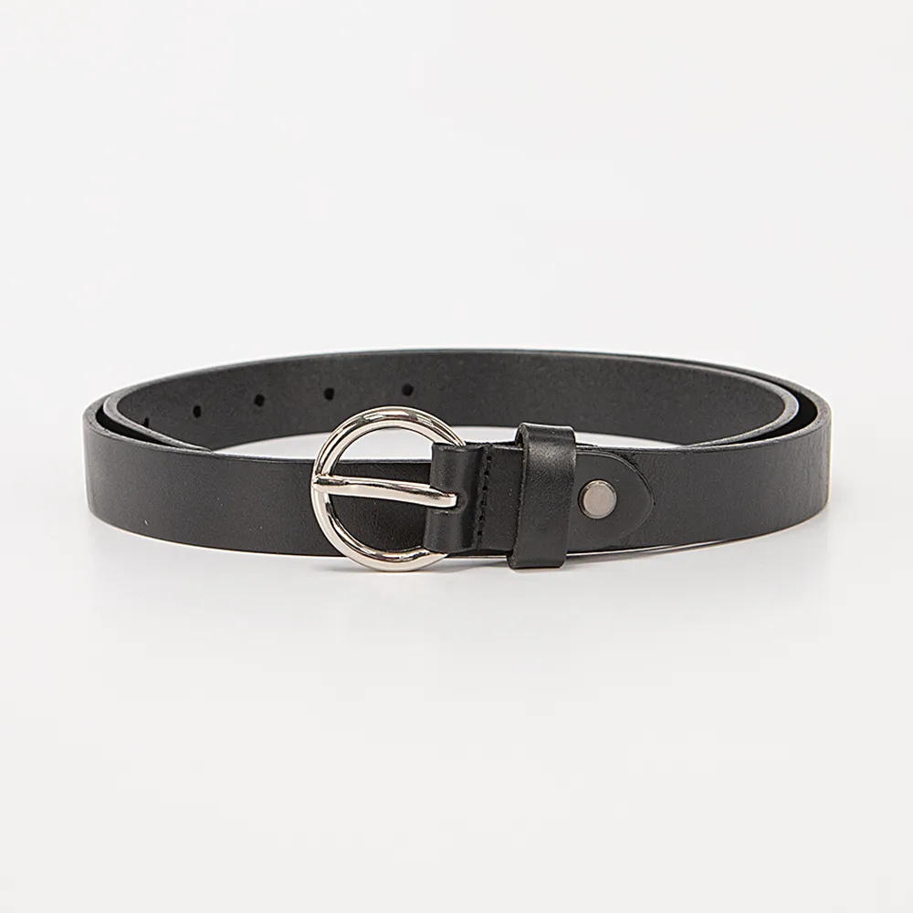 Ремень от торговой марки Poshete из натуральной кожи ярко-коричневого цвета. Модель длиной 106-110 см, шириной 2,5 см. Металлическая пряжка круглой формы; шлевка для фиксации.