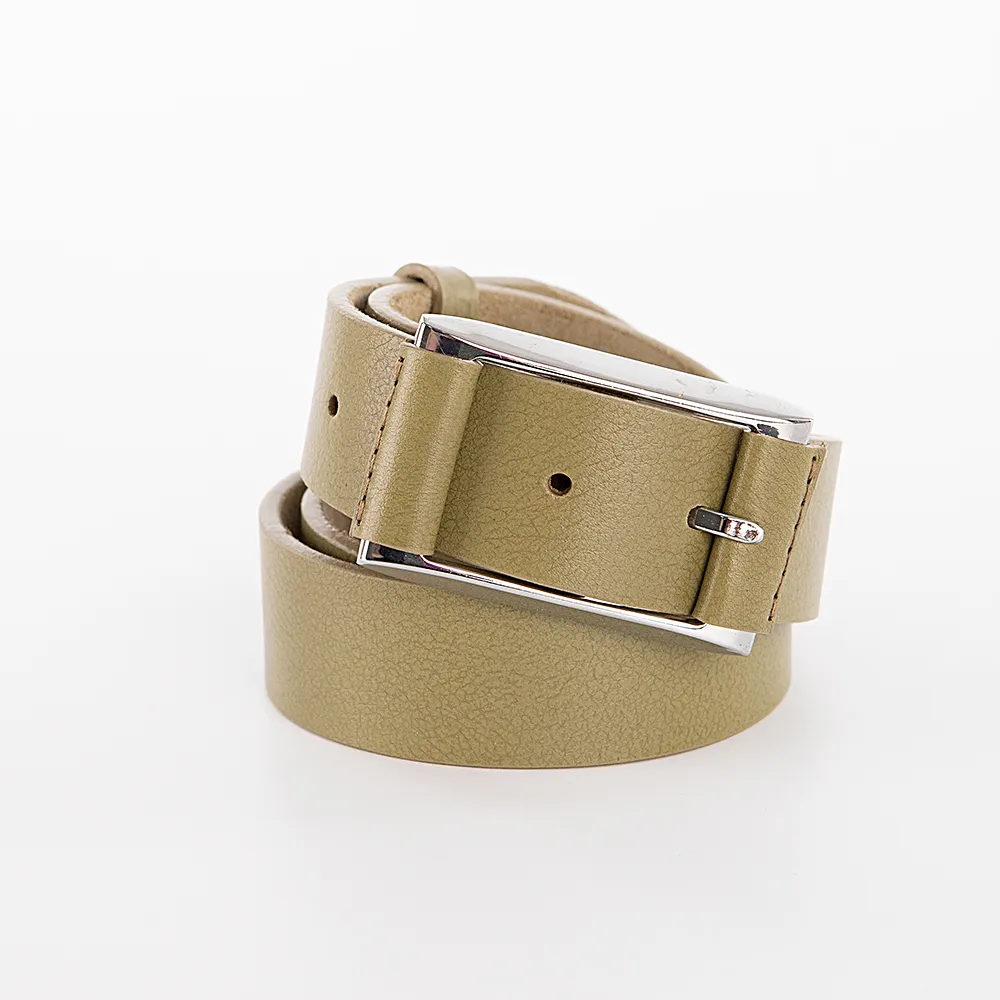 Ремень от торговой марки Mayer изготовлен из натуральной кожи оливкового цвета. Модель шириной 3,5 см, длиной до 110 см.