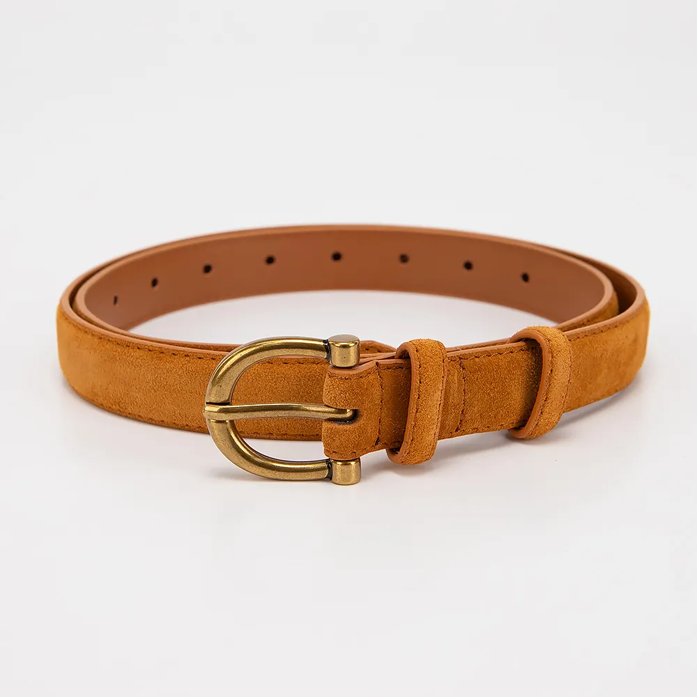 Женский ремень от торговой марки Poshete из натуральной замши. Модель шириной 2,5 см, длиной 95-105 см. Размер: S. Металлическая пряжка, две шлевки. Декорирован отстрочкой.