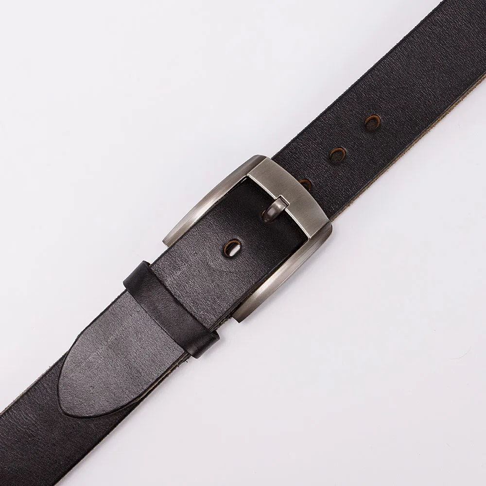 Стильный мужской ремень от бренда Poshete выполнен из натуральной толстой кожи, с оборотной стороны замшевый. Ремень коричневого цвета, ширина 4 см, длина 105-110 см. Стальная квадратная пряжка с «язычком», одна шлёвка и классические отверстия для фиксации объёма, на конце овальной формы.