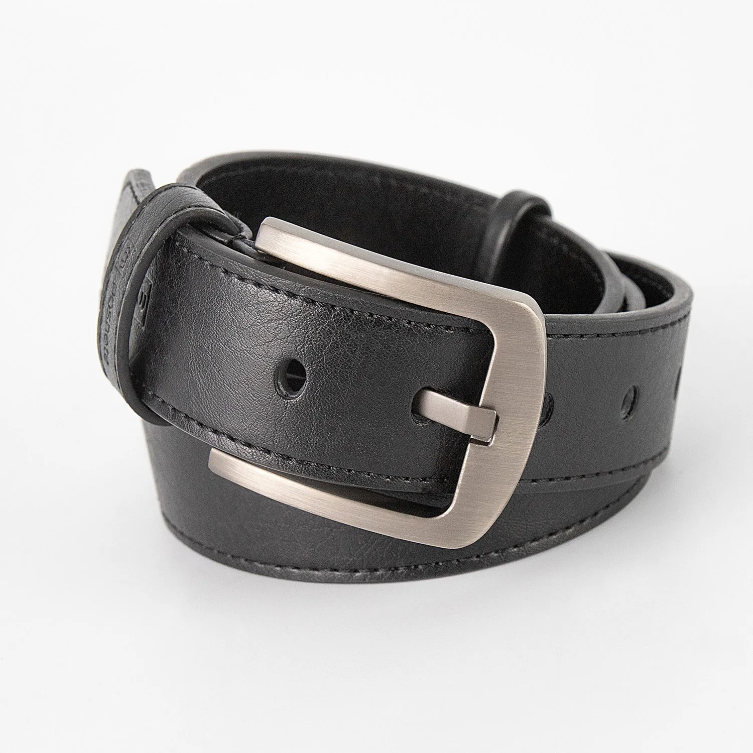 Стильный широкий мужской ремень Poshete выполнен из натуральной мягкой кожи черного цвета. Аксессуар с широкой открытой металлической пряжкой и одной кожаной шлевкой. Модель длиной 111-115 см и шириной 3,8 см.