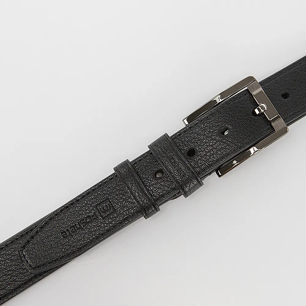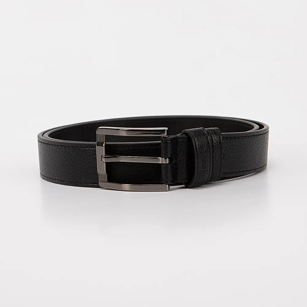 Стильный мужской ремень от бренда Poshete выполнен из натуральной мягкой кожи в черном цвете. Аксессуар дополнен открытой металлической пряжкой и кожаной шлевкой. Модель длиной 105-110 см и шириной 3,5 см.