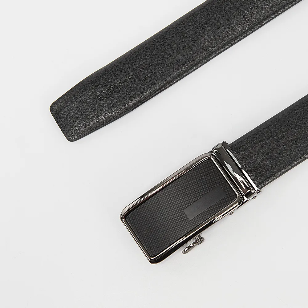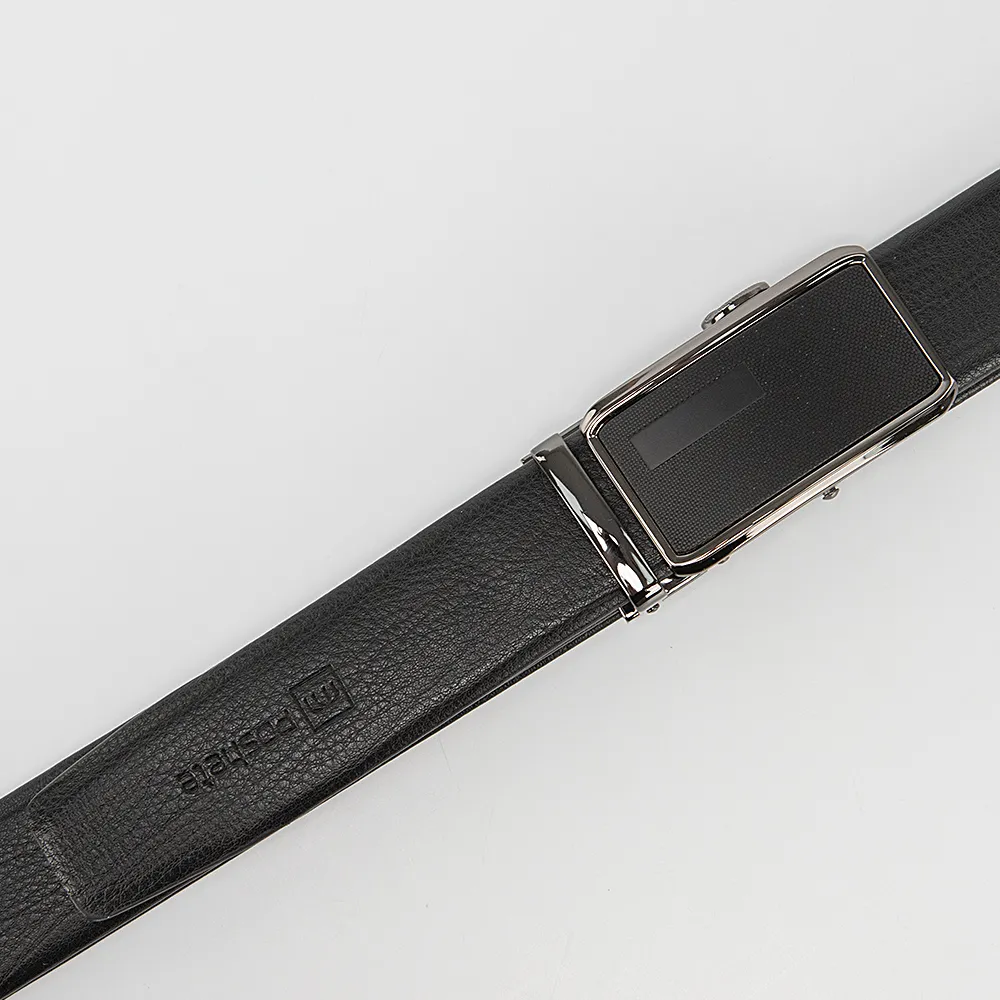 Ремень мужской Poshete выполнен из натуральной кожи в чёрном цвете. Тип застежки - металлическая пряжка автомат и шлёвка. Украшен тиснением логотипа. Имеет ширину 4 см. Регулируемый объём 105-110 см.