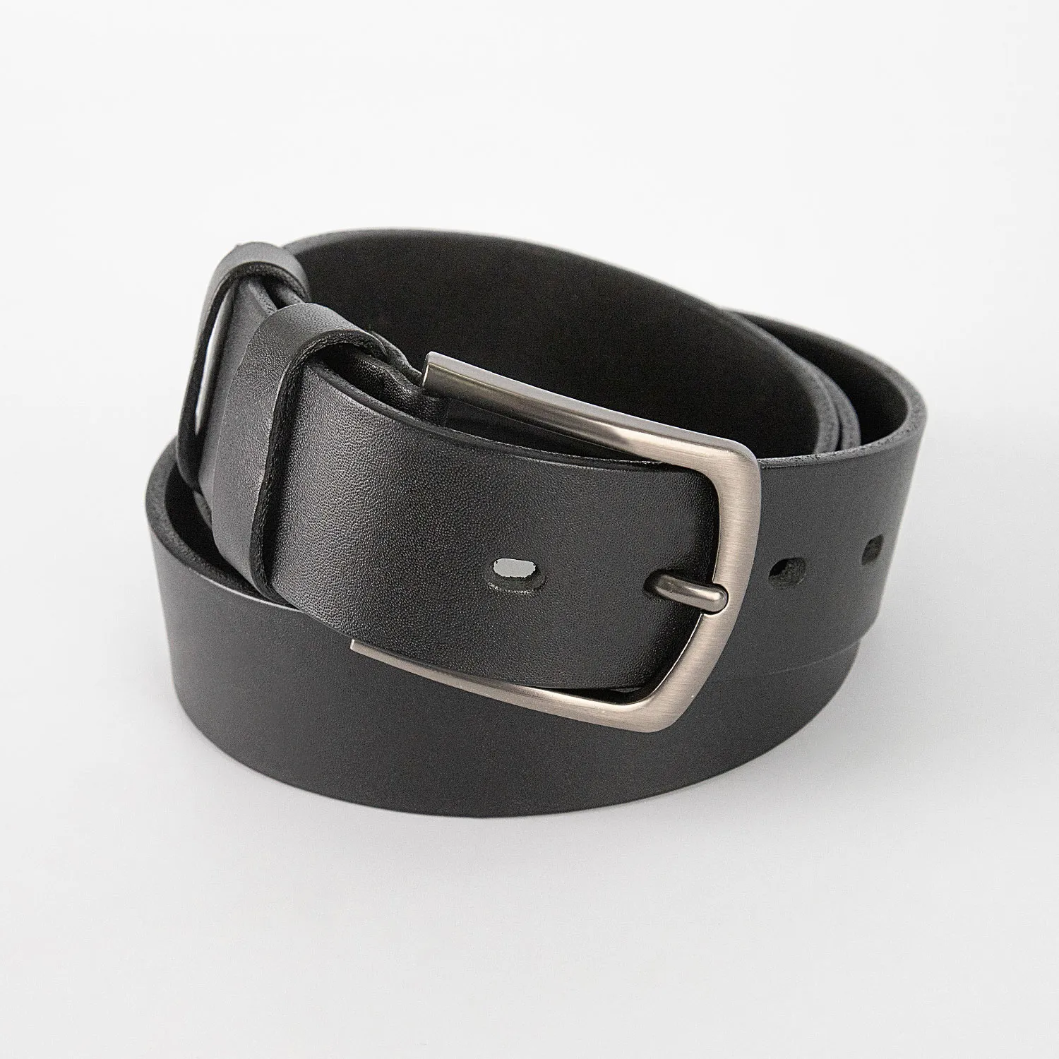 Ремень от торговой марки Poshete из натуральной кожи черного цвета. Модель с металлической пряжкой и двумя шлевками; ширина - 40 мм, длина – 95-125 см.