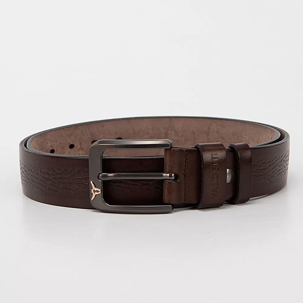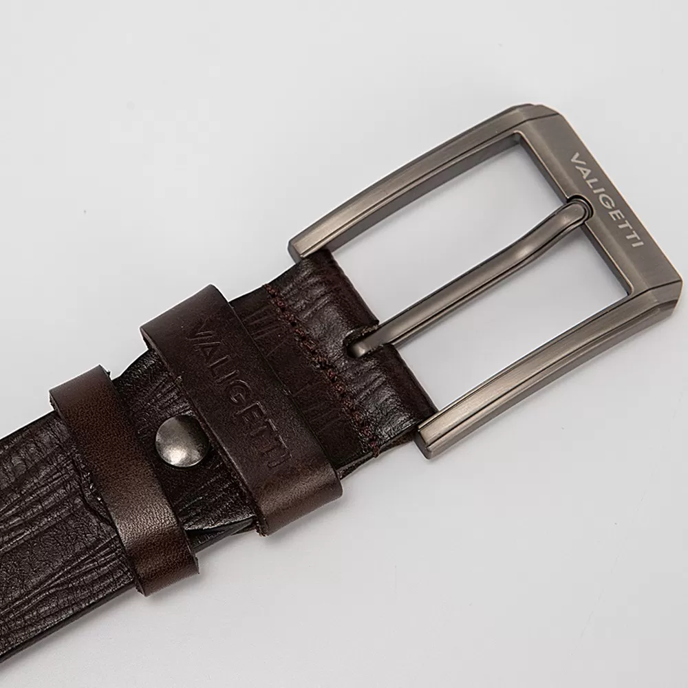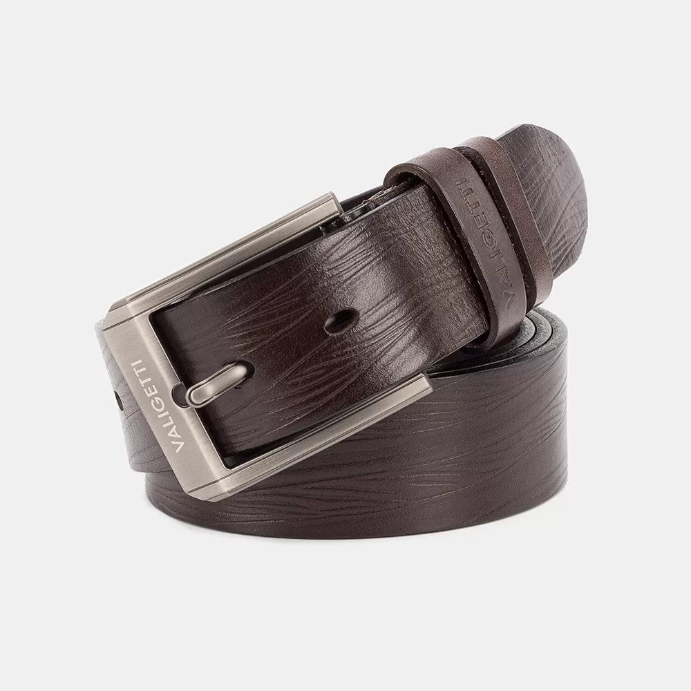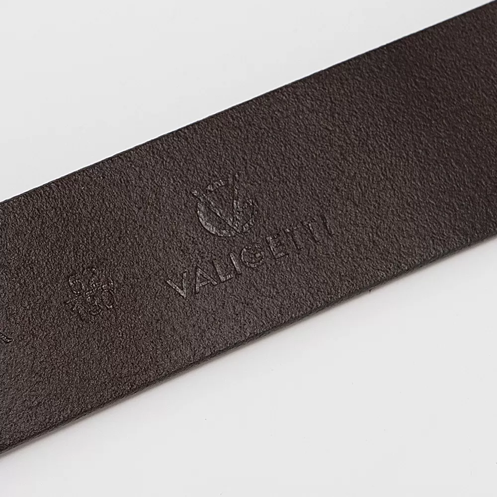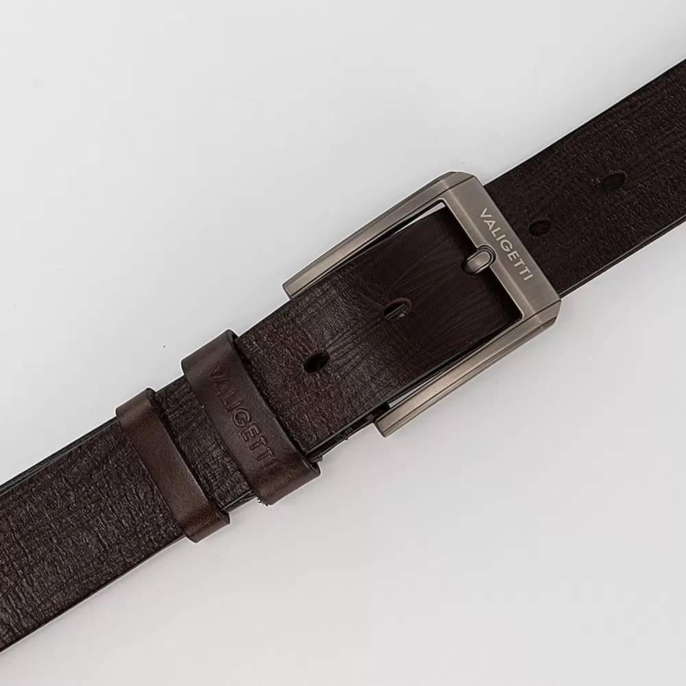 Мужской ремень от Valigetti из натуральной кожи коричневого цвета. Модель с металлической матовой пряжкой и двумя шлёвками. Ширина — 3,8 см, длина — 130 см. Размер: L.