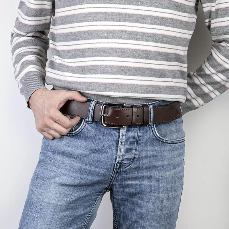 - Стильный мужской ремень изготовлен из натуральной бычьей кожи;