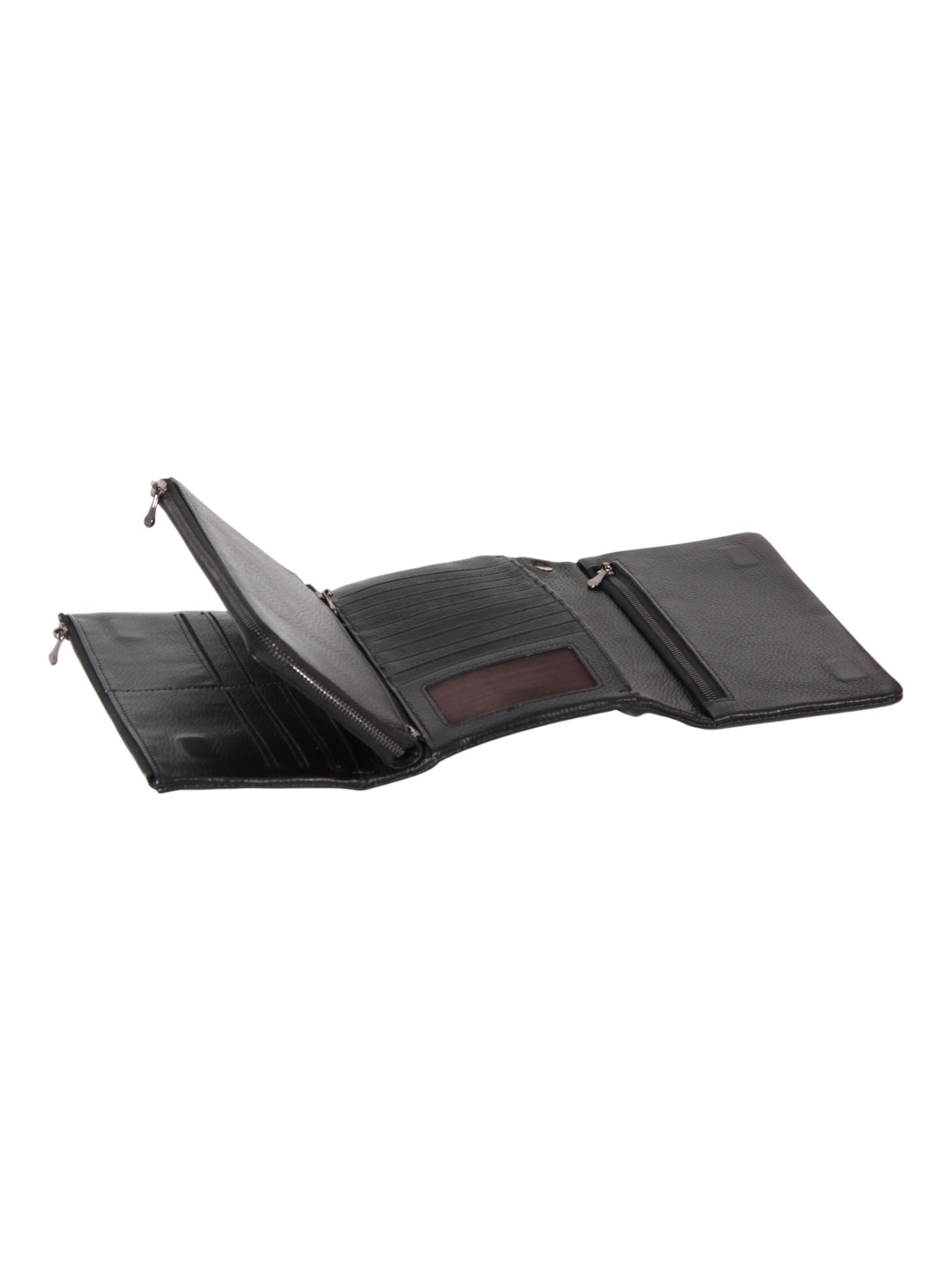 Классический мужской клатч от бренда Fidelio Largo - выполнен из натуральной мягкой кожи черного цвета. Открывается и закрывается на замок клапан с магнитами. Внутри имеет 15 специальных отделов для карточек, 2 отделение для купюр, специальный кармашек для водительского удостоверения и карман для мобильного телефона. Так же данная модель прошита фирменной подкладкой.