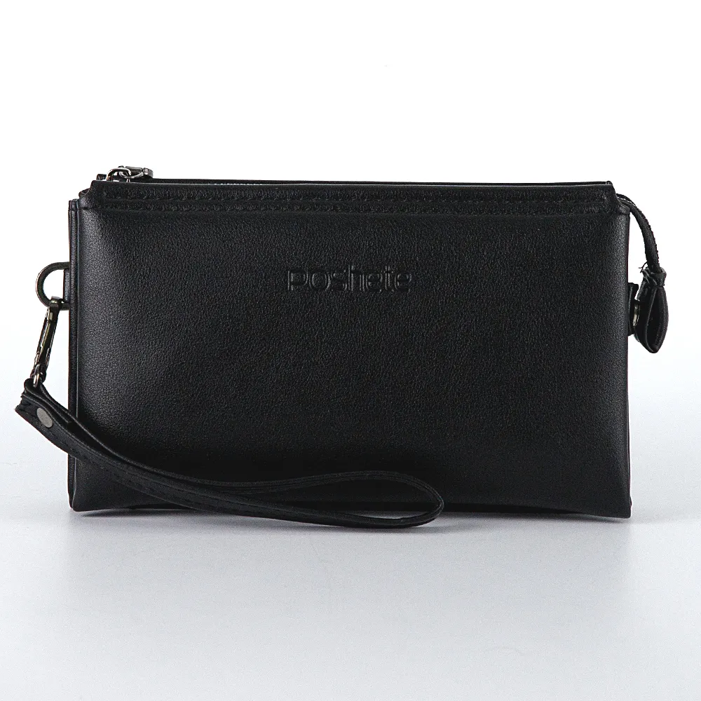 Простой и изящный клатч чёрного цвета от бренда Poshete выполнен из искусственной кожи. Застёгивается на молнию, сзади имеет плотно прилегающую ручку, комфортную для ладони. Всё самое основное, документы на авто, телефон, ключи, будет под рукой.