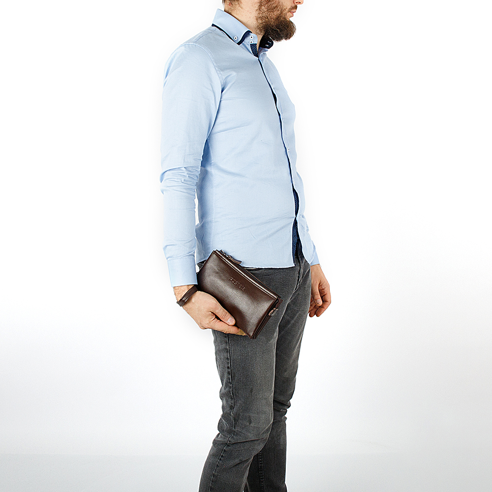 Простой и изящный клатч коричневого цвета от бренда Poshete выполнен из искусственной матовой кожи. Застёгивается на металлическую молнию, сзади имеет плотно прилегающую ручку, комфортную для ладони. Всё самое основное, документы на авто, телефон, ключи, будет под рукой.