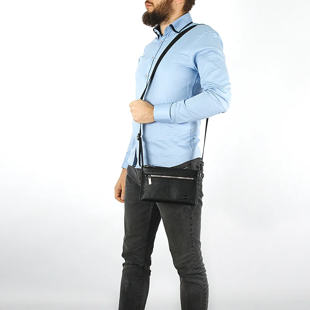Стильная сумка-клатч от бренда Francesco Molinary изготовлена из натуральной кожи черного цвета с металлической фирменной фурнитурой . Модель со съемным текстильным плечевым ремнем на карабинах. Отделение на молнии. Внутри: подкладка и карманы. На лицевой стороне – карман на молнии.