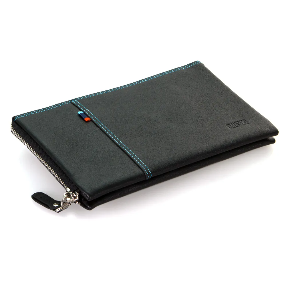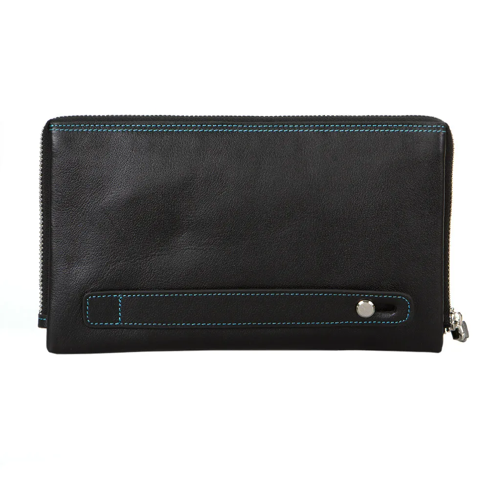 Мужской клатч от торговой марки Francesco Molinary из натуральной кожи черного цвета с яркой контрастной отстрочкой. Модель с лямкой для ношения на запястье, съемным ремешком на запястье. Отделение на молнии по трем сторонам, что обеспечивает удобный дост