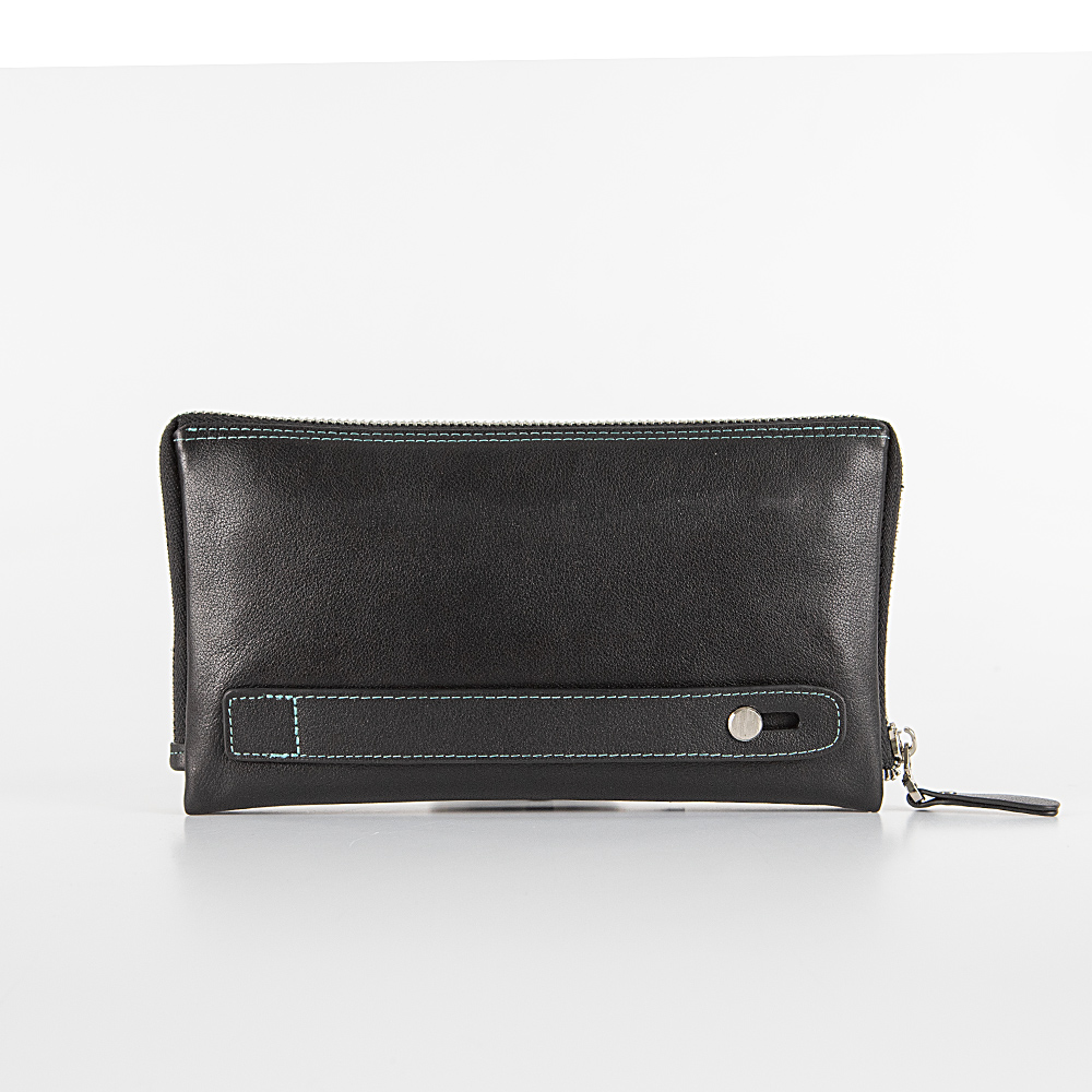 Мужской клатч от торговой марки Francesco Molinary из натуральной кожи черного цвета с яркой контрастной отстрочкой. Модель с лямкой для ношения на запястье, съемным ремешком на запястье. Отделение на молнии по трем сторонам, что обеспечивает удобный доступ. Внутри: фирменная подкладка, три отсека, карман на молнии, карманы для карт.