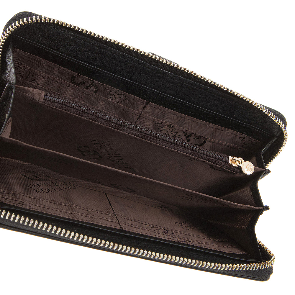 Женский повседневный клатч от бренда Francesco Molinary бордового цвета, с отличным качеством отделки, выполнен из натуральной кожи внутренней подкладкой из текстильного материала. Оснащён ремешком для запястья, застёгивается на молнию по трём сторонам, благодаря такой молнии широко распахивается. Внутри три отделения для купюр, карман на молнии и кармашки для карточек.
