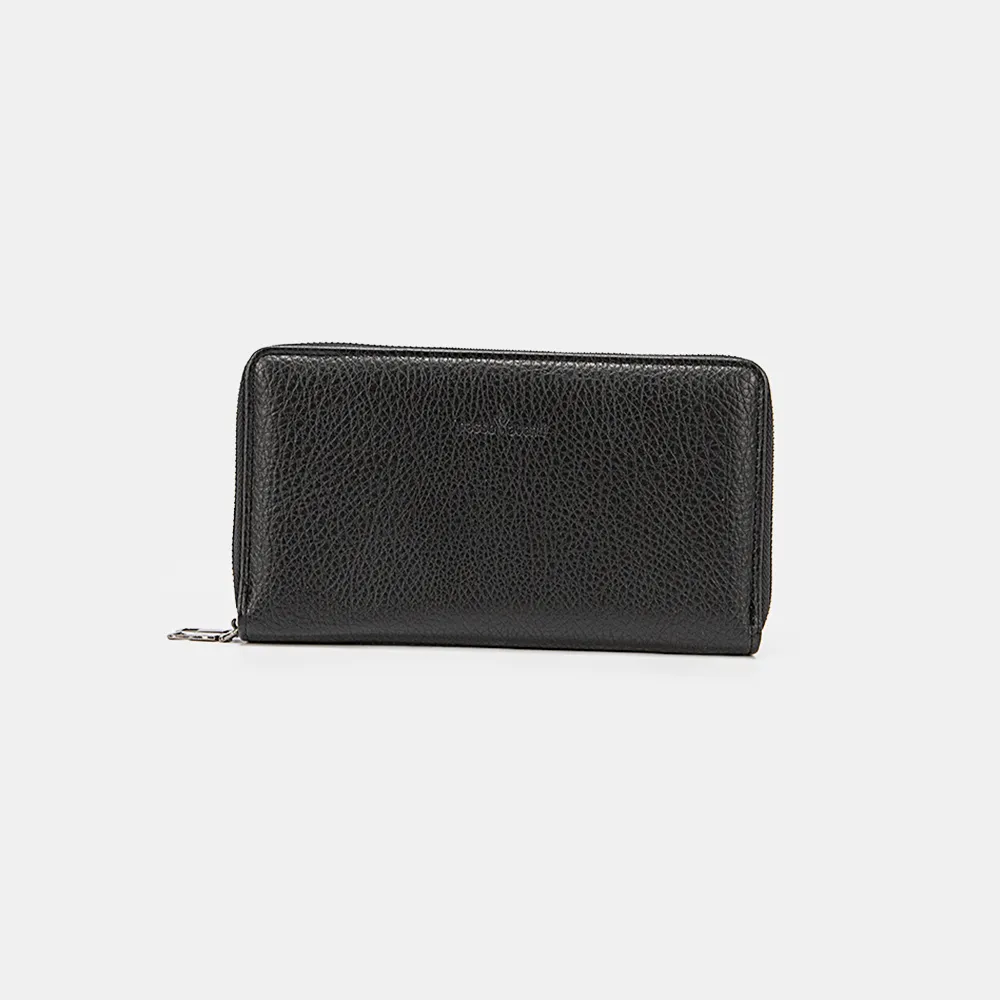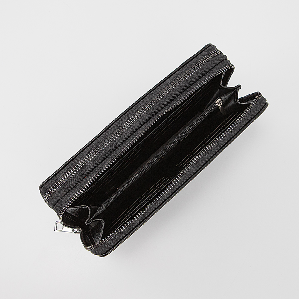 Клатч от торговой марки Passo Avanti из искусственной кожи черного цвета. Модель со съемной ручкой для запястья. Два отделения на молнии; в одном из них – карманы для карт и купюр, карман-перегородка на молнии, в другом - карманы для карт и купюр. Снаружи имеется лямка для ношения в руке.