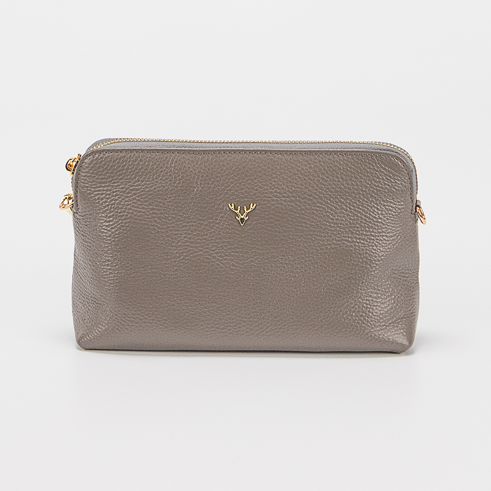 Сумка от торговой марки Poshete из натуральной кожи коричневого цвета. Лицевая сторона с оригинальным декором. Компактная модель со съемным регулируемым плечевым ремнем и ремешком для запястья. Отделение на молнии. Внутри: фирменная подкладка, карман на молнии, накладной карман. На задней стороне – карман на молнии.