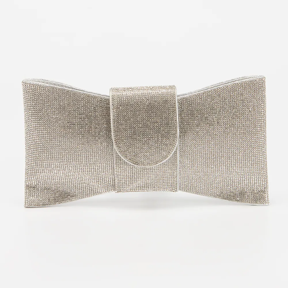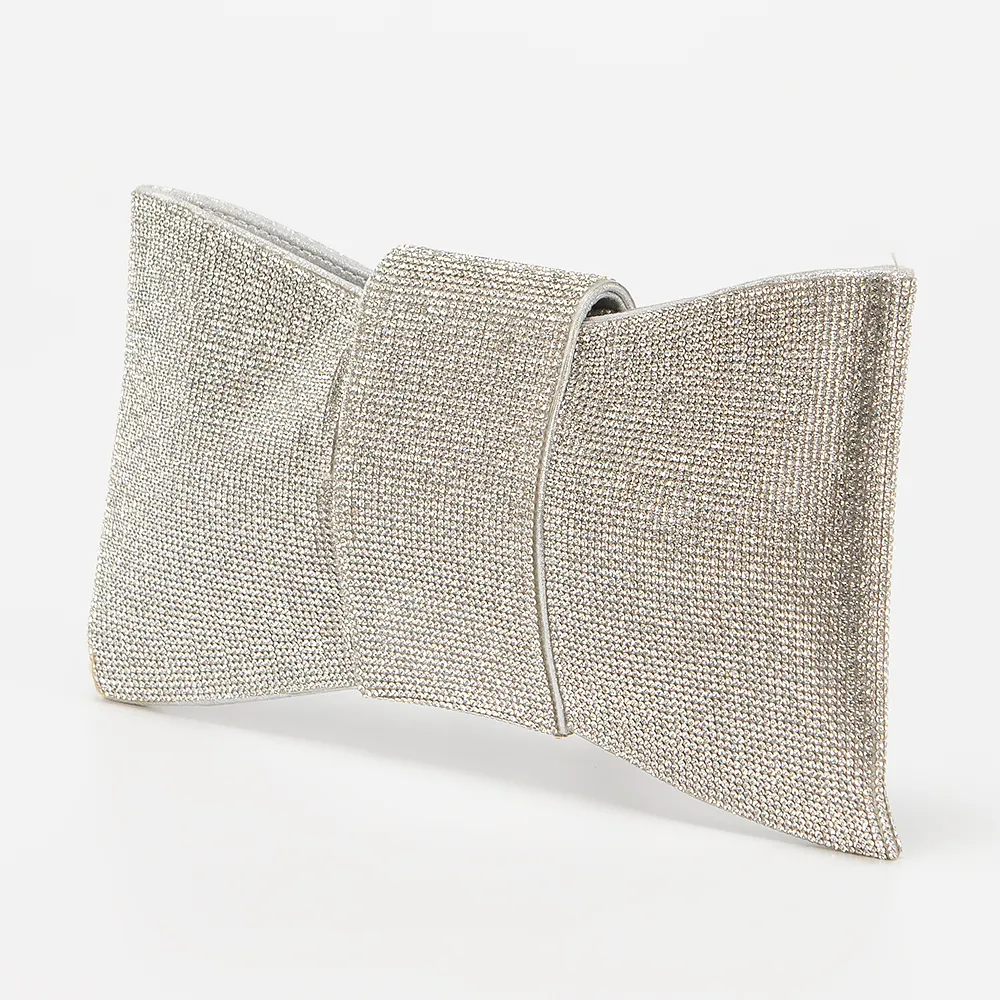 Оригинальный клатч от торговой марки Passo Avanti. Декорирован стразами серебристого цвета. Модель стилизована под большой бант. Отделение на молнии с дополнительной застежкой в виде клапана на магнитной кнопке. Внутри атласная подкладка и накладной карман. В комплекте съемный ремень-цепочка.