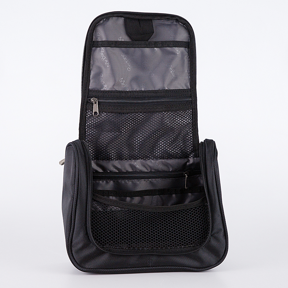 Несессер от торговой марки Mr.Bag из прочного практичного полиэстера черного цвета. Модель с одной ручкой. Отделение на молнии. В раскрытом виде имеет вертикальную ориентацию и подвешивается с помощью лямки. Внутри: текстильная подкладка, глубокий карман без застежки, карман-сетка на молнии, карман на молнии, накладной карман, резинка для хранения мелких предметов. Незаменимый аксессуар в поездках и путешествиях.