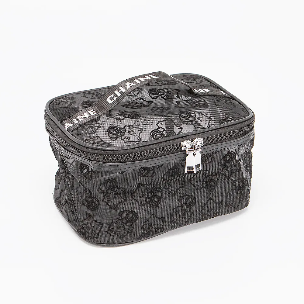 Женская косметичка от бренда Passo Avanti выполнена из прозрачного текстильного материала с изображением котиков. Аксессуар прямоугольной формы, закрывается книжкой и застёгивается на молнию, сверху есть ручка для переноски. Отличный аксессуар для путешествий.