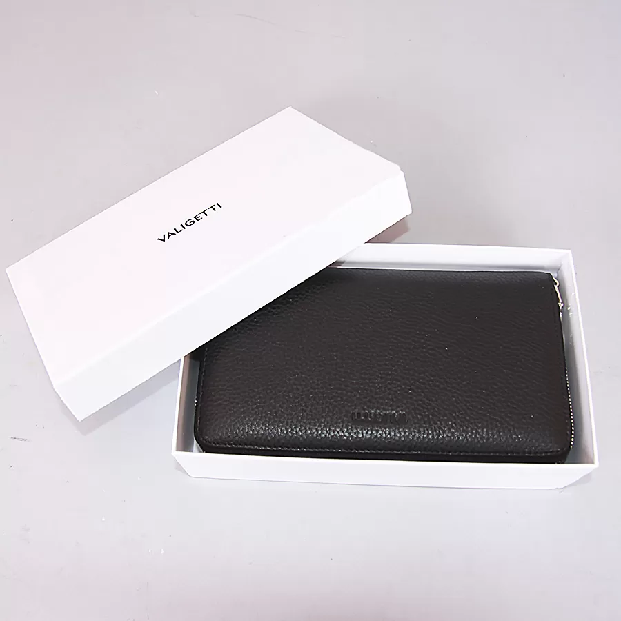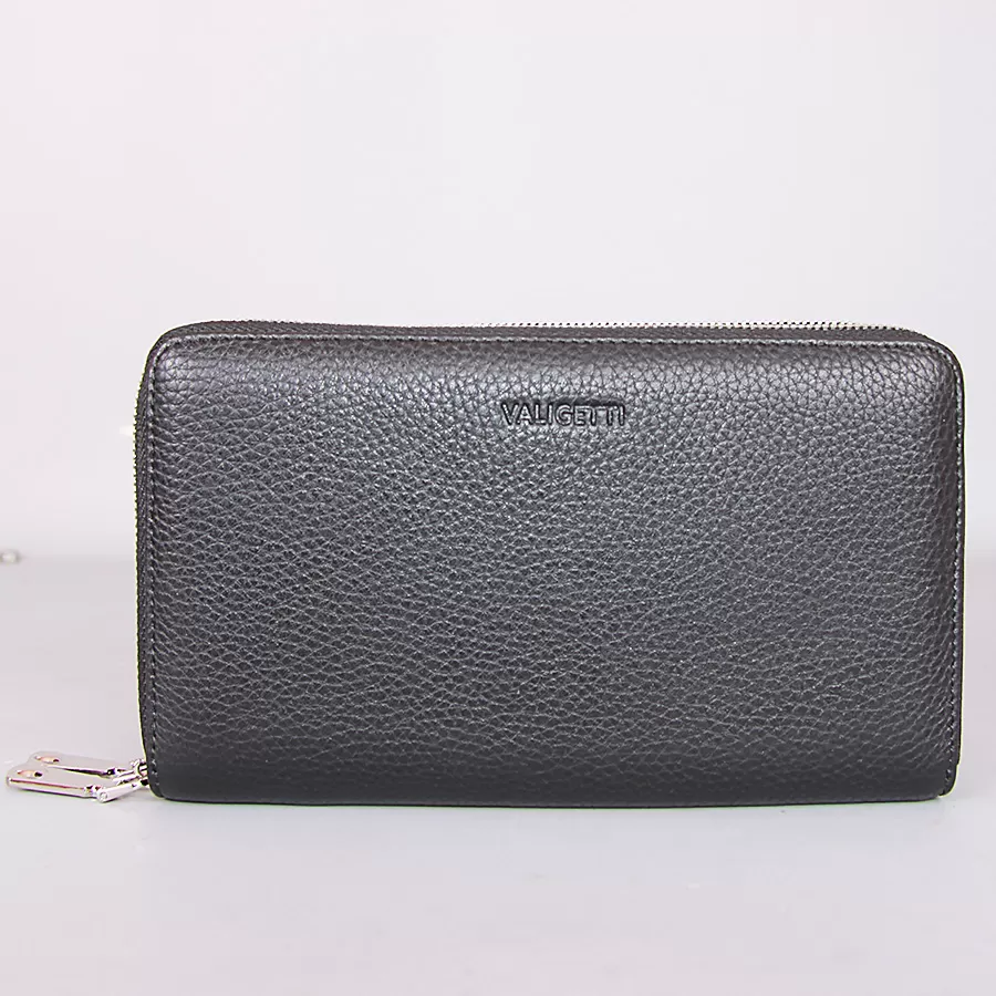 - Классический мужской клатч от бренда Valigetti выполнен из натуральной мягкой кожи черного цвета и дополнен серебристой металлической фурнитурой.
