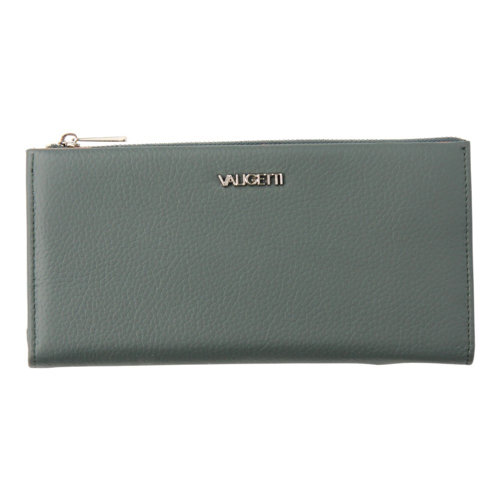 Кошелёк от бренда Valigetti изготовлен из натуральной кожи, зеленого цвета. Модель имеет 2 отделения : Одно имеет застежку на молнии и оно разделено кармашком на молнии, а второе - клапан с двумя магнитами. Внутри кошелек прошит фирменной подкладкой. Так же внутри изделие имеет 11 специальных отделений для карт и кармашек для водительского удостоверения.