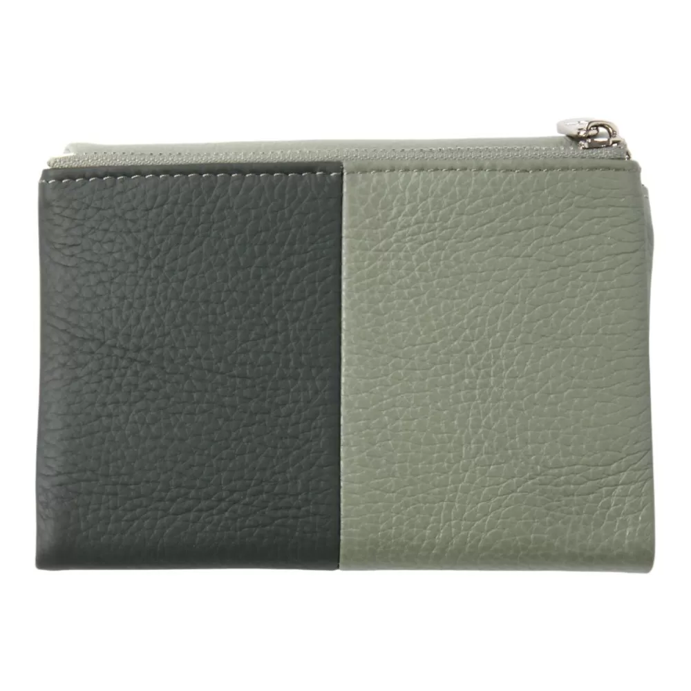 Кошелёк от бренда Valigetti изготовлен из натуральной кожи, оливково-черного цвета. Модель имеет 2 отделения : Одно имеет застежку на молнии, а второе - клапан с двумя магнитами. Внутри кошелек прошит фирменной подкладкой и большой кармашек для купюр, а так же внутри есть 6 специальных отделений для карт, кармашек для водительского удостоверения и еще один дополнительный кармашек на молнии