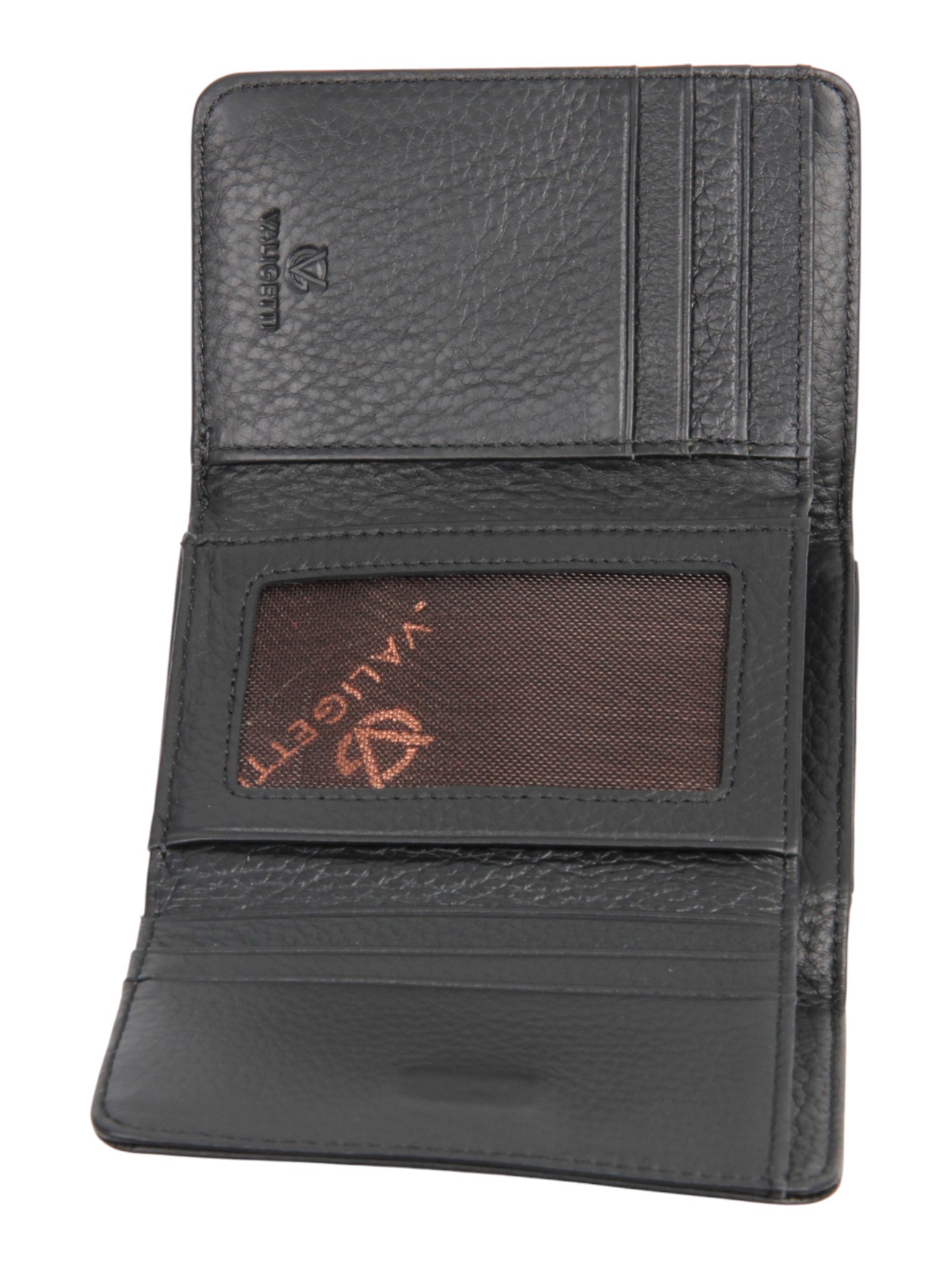 Кошелёк в черном цвете от бренда Valigetti изготовлен из натуральной кожи. У кошелька есть 2 отделения : первое закрывается на молнию-застежку и внутри разделено перегородкой, а второе отделение закрывается на клапан-магнит, внутри есть большое отделение для купюр, кармашек для мелочи, кармашек для документов и 6 специальных отделений под карты. Так же кошелек прошит фирменной подкладкой Valigetti.