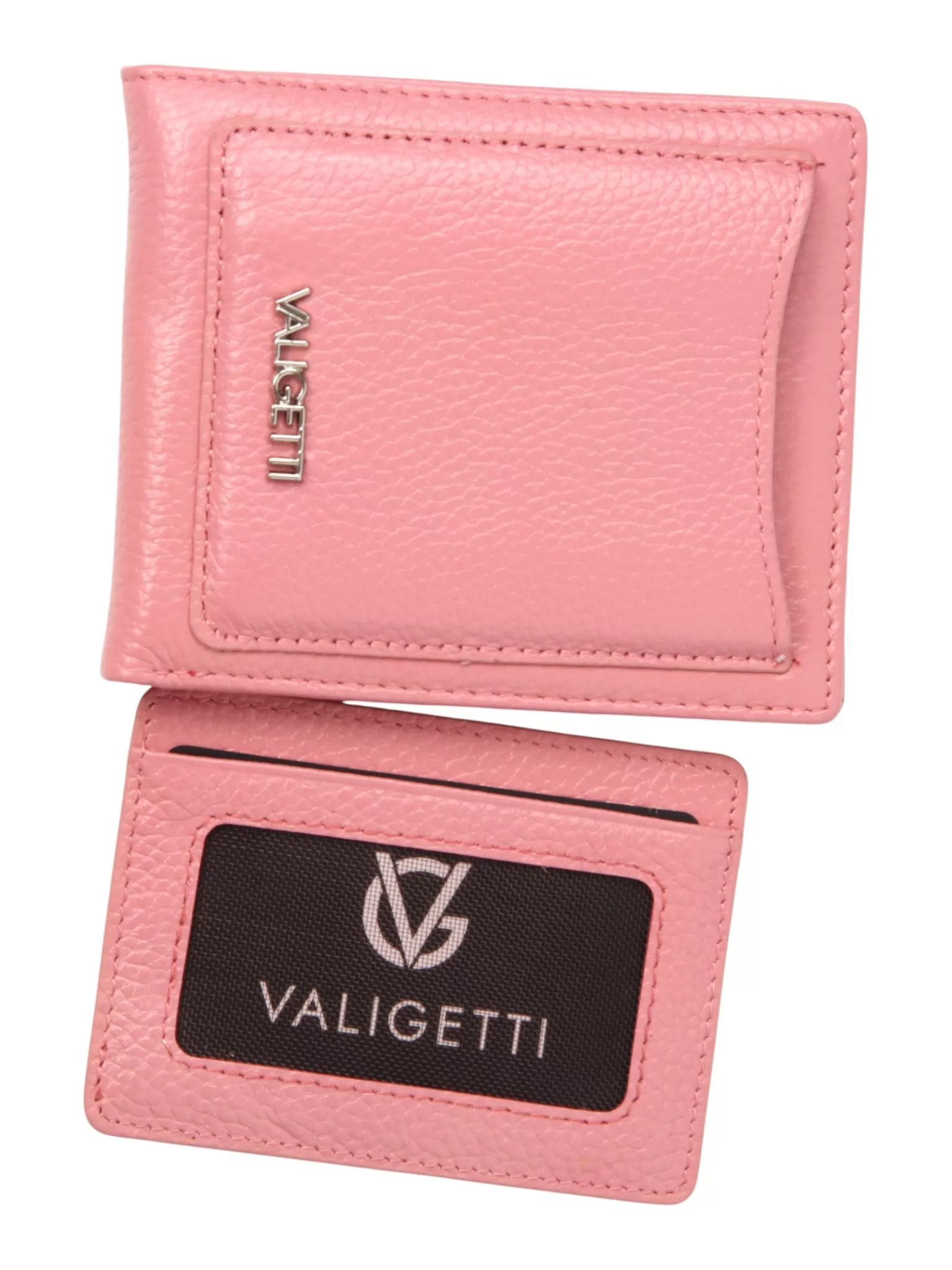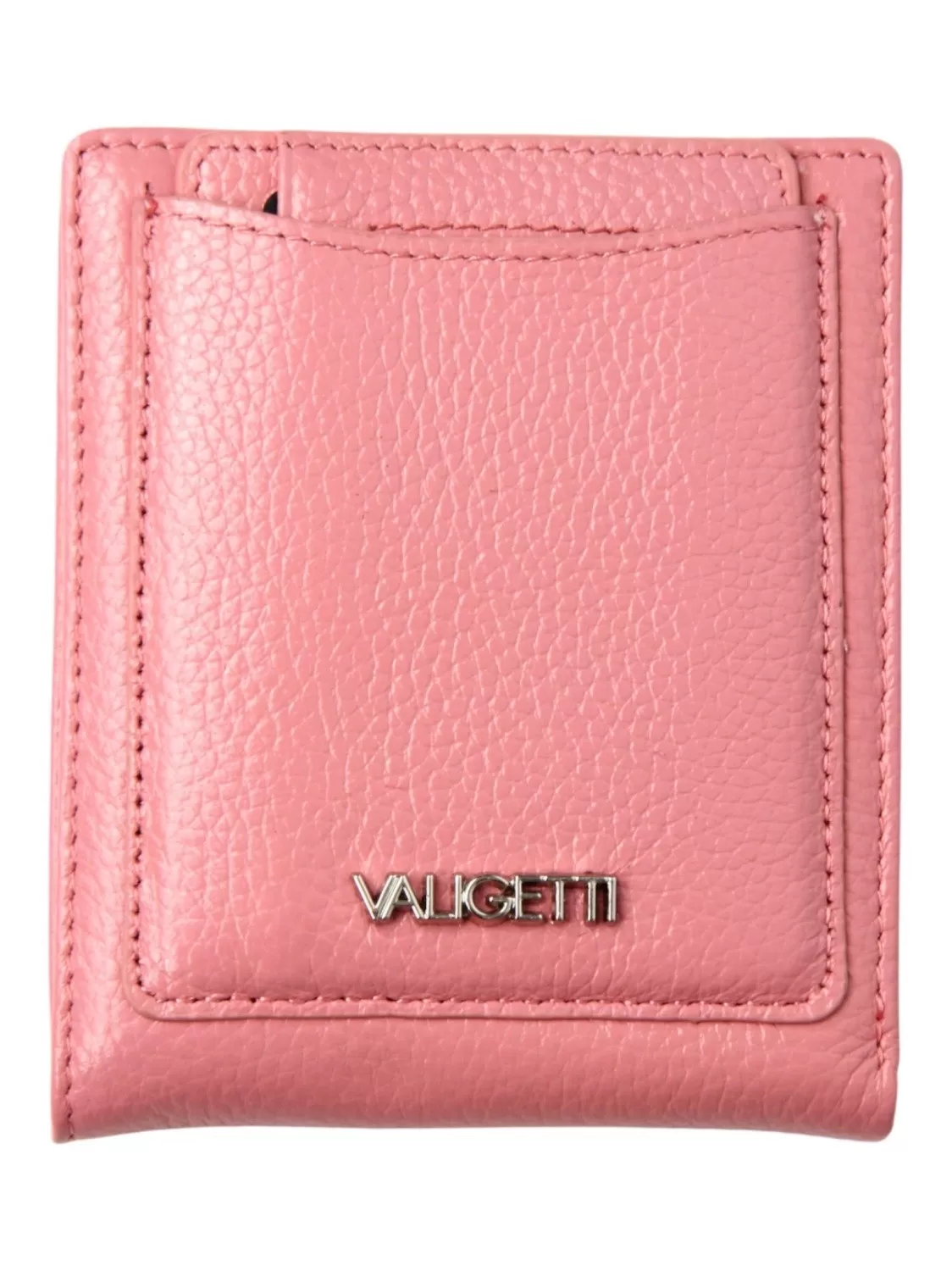 Кошелёк в розовом цвете от бренда Valigetti изготовлен из натуральной кожи. У данной модели нет застежки, он открывается как книжка. У кошелька есть 2 отделения под купюры, 8 специальных отделений под карты и 2 кармашка под мелочь. Так же кошелек прошит фирменной подкладкой Valigetti.