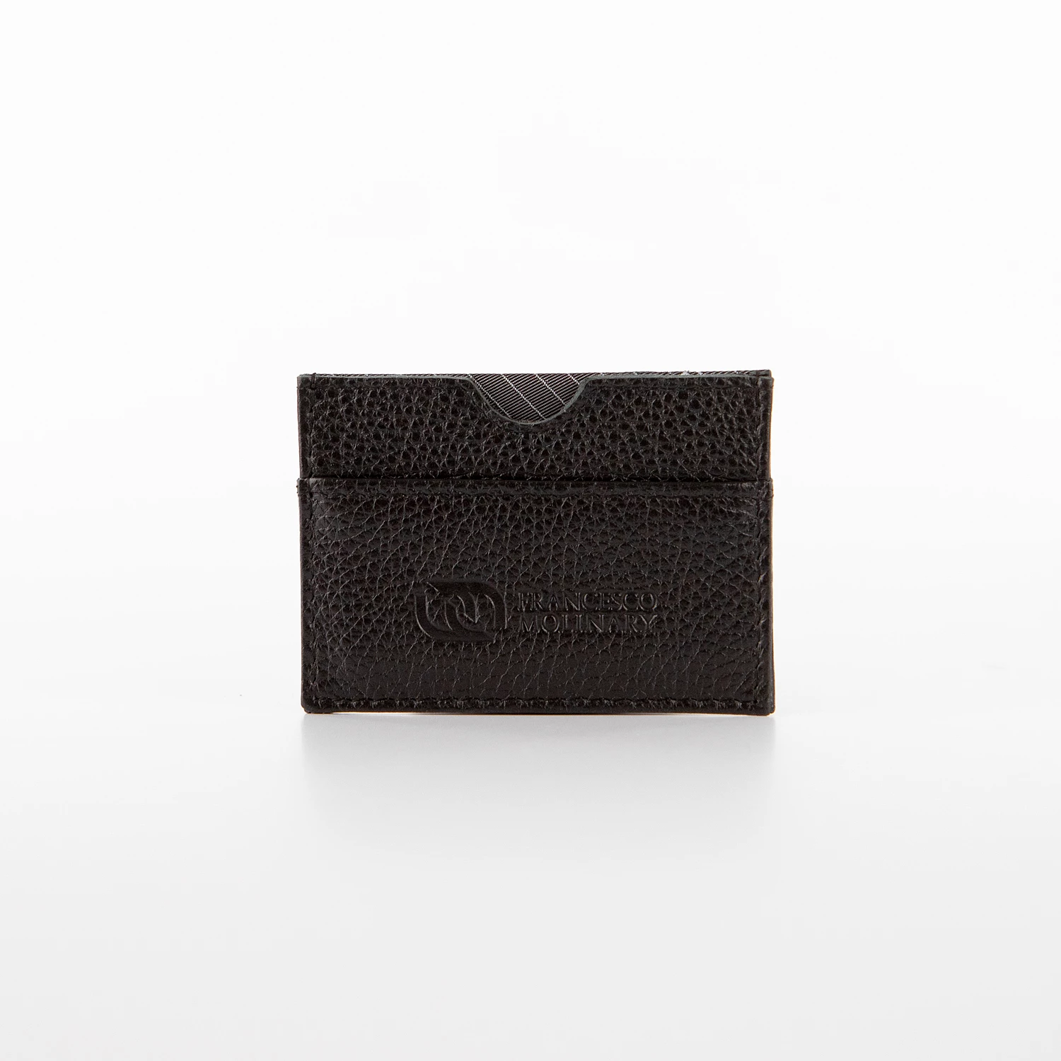 Кредитница от бренда Francesco Molinary из натуральной кожи черного цвета. Модель с тремя карманами для карт.