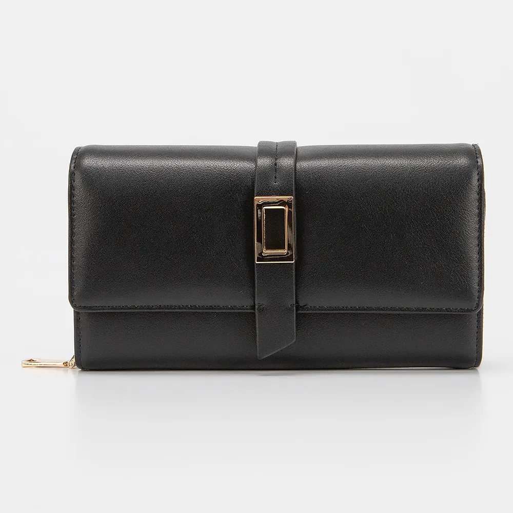 Клатч от торговой марки Passo Avanti из искусственной кожи коричневого цвета. Модель закрывается клапаном на магнитных кнопках. Внутри отделение на молнии, карманы для карт, отделения для купюр.Снаружи декорирован хлястиком с позолоченной пряжкой.