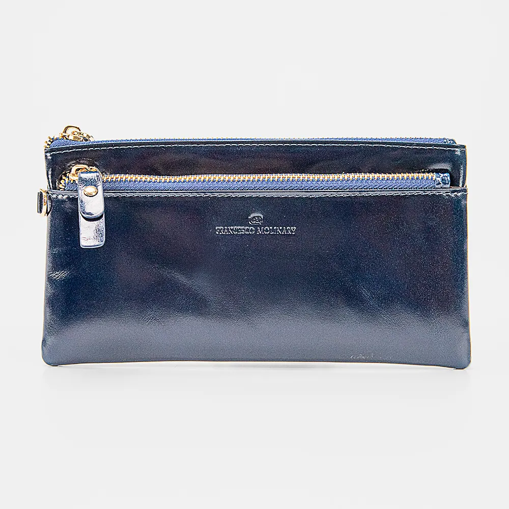 Клатч от торговой марки Francesco Molinary из натуральной кожи бордового цвета. Модель с ремешком для запястья. Отделение на молнии. Внутри: текстильная подкладка, накладной карман с карманами для карт. На лицевой и задней сторонах – карман на молнии.