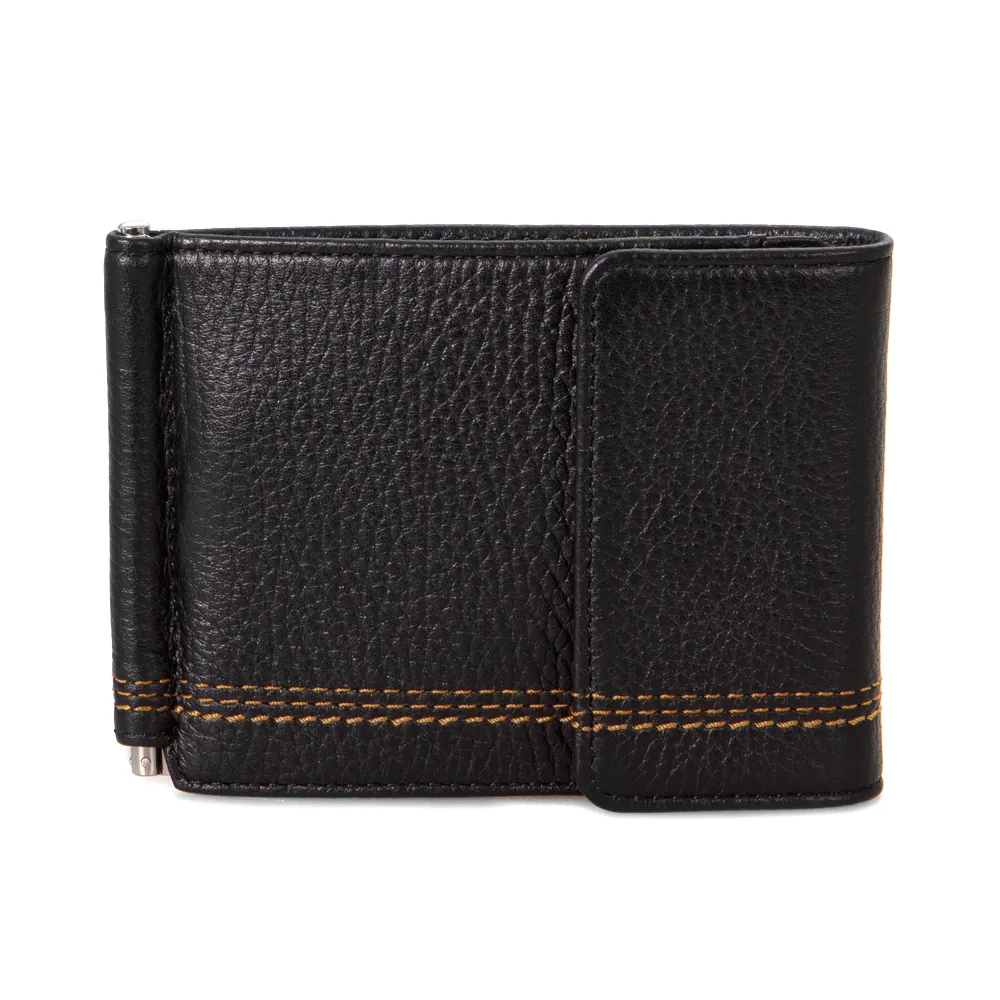 Классический зажим для денег от бренда Francesco Molinary выполнен из натуральной мягкой кожи и дополнен декоративной отстрочкой. Внутри несколько прорезей для пластиковых карт. Аксессуар с застежкой на кнопку.