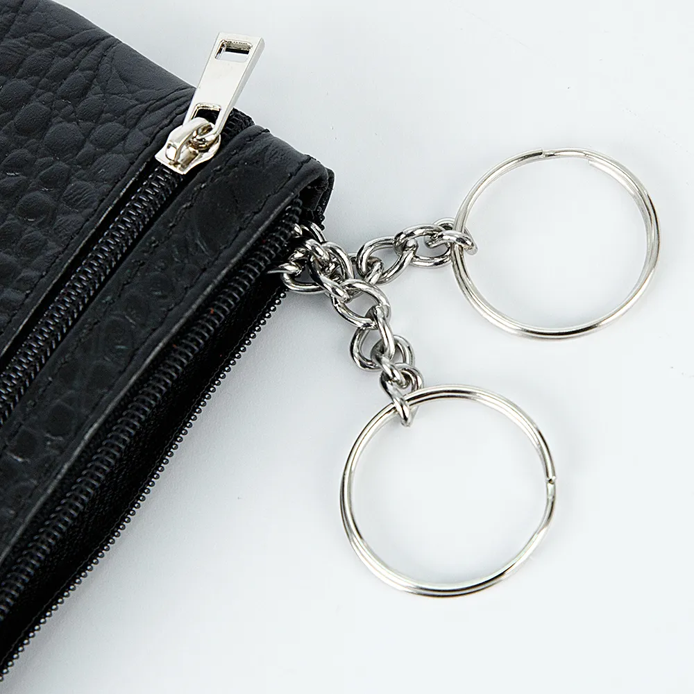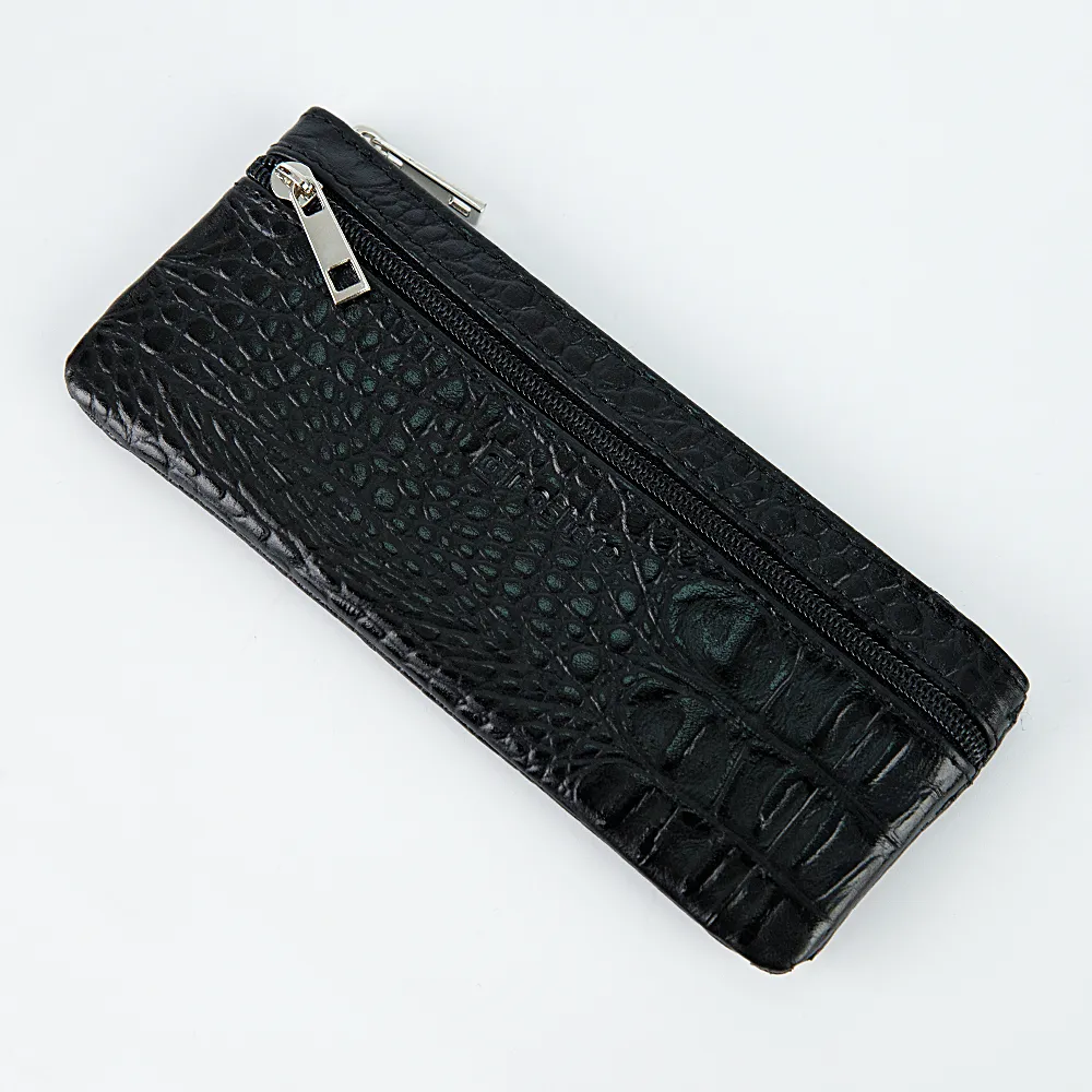 Стильная ключница Poshete из натуральной мягкой кожи красного цвета, оформлена тиснением под кожу рептилии. Внутри одно основное отделение с двумя цепочками под ключи. Модель с застежкой на молнию.