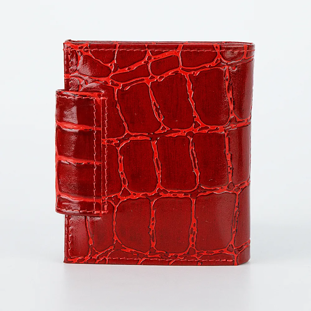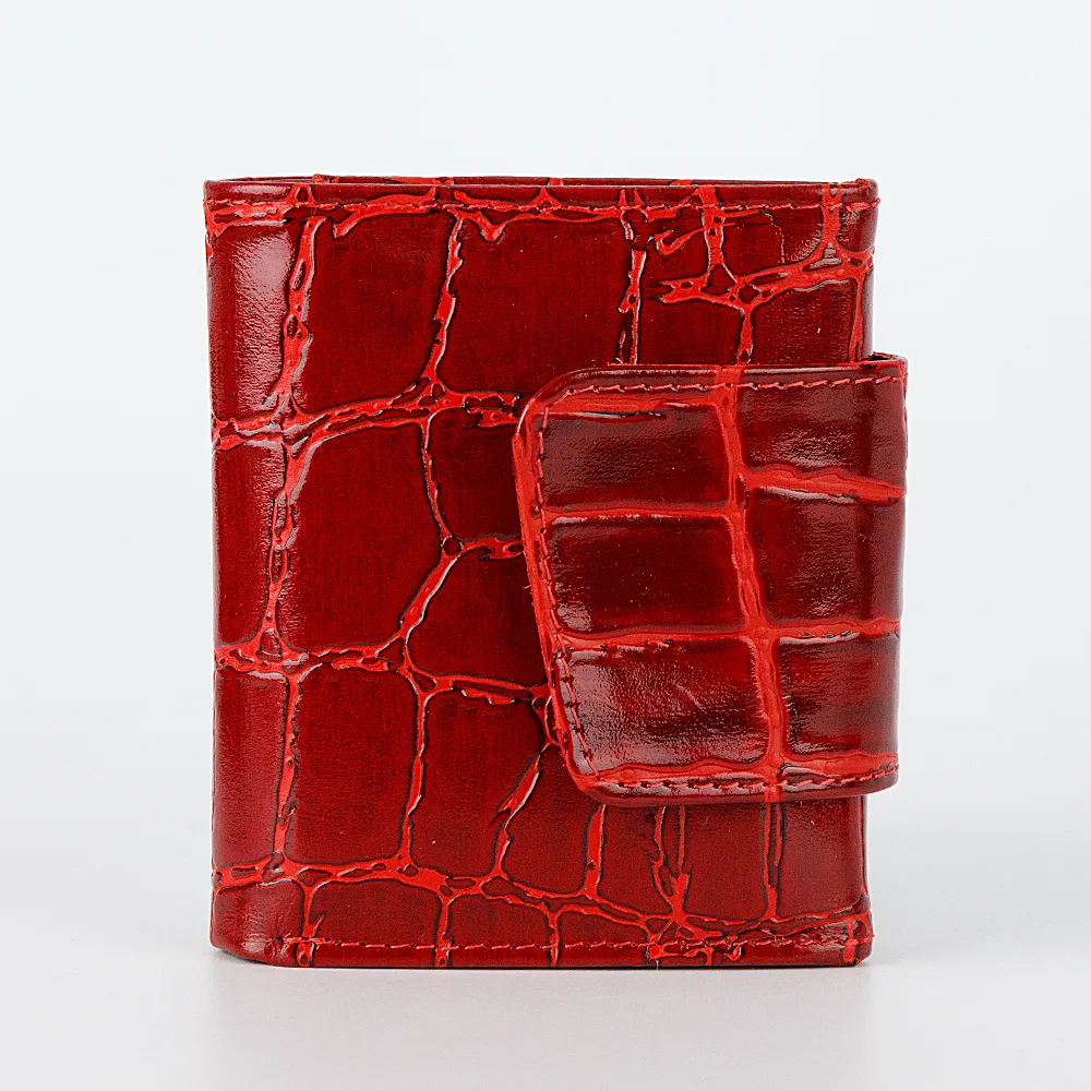 Компактный женский кошелек от торговой марки Poshete из натуральной кожи голубого цвета. Модель с двумя сложениями; закрывается клапаном на кнопке. Внутри: отделение для купюр, евромонетница с клапаном на кнопке, 3 кармана для пластиковых карт.