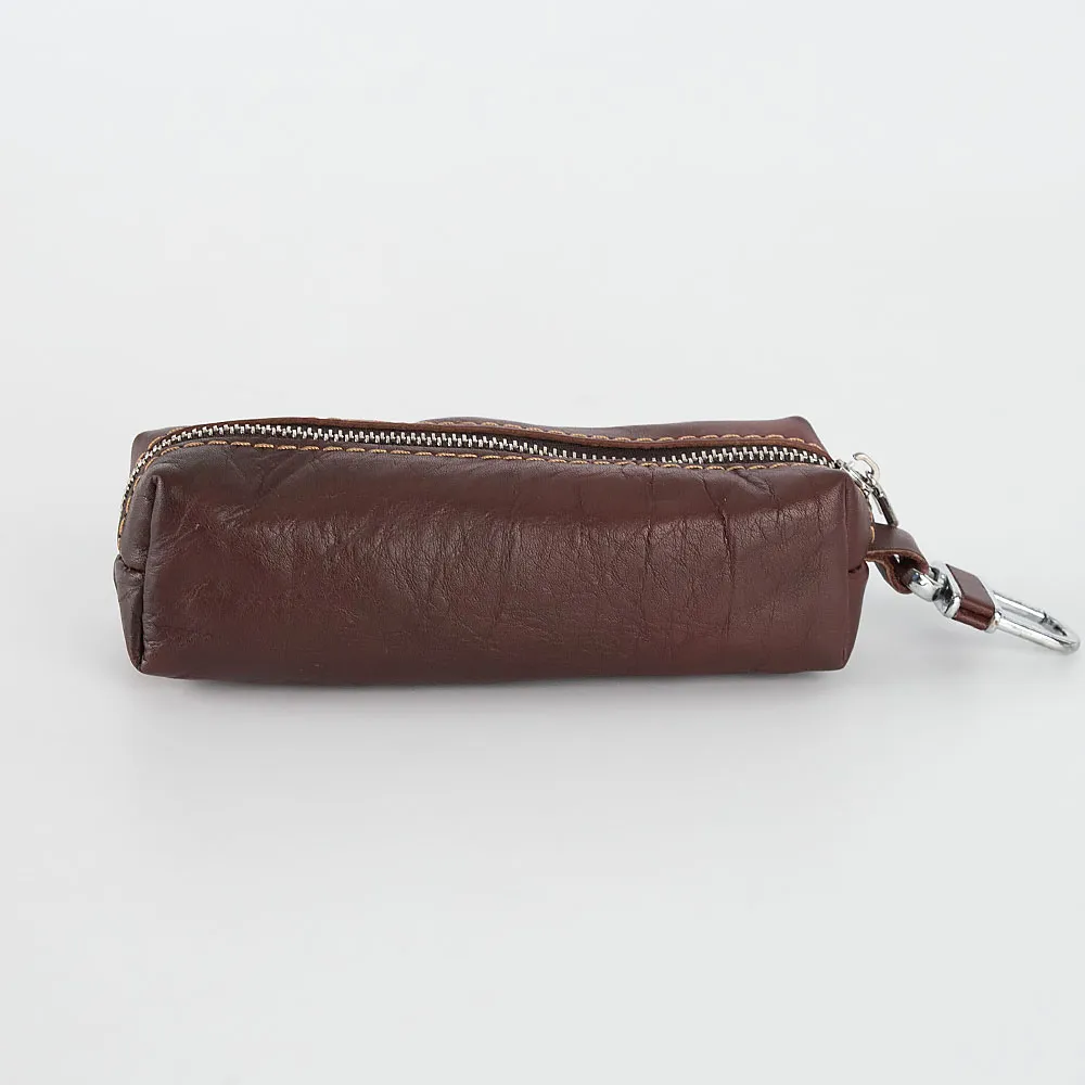 Винтажная ключница от бренда Poshete с отличным качеством отделки и металлической фурнитурой, выполнена из натуральной кожи. Ключница цвета dark camel, вытянутая и объёмная по форме. Снаружи оснащена карабином для пристёгивания, застёгивается на молнию, внутри кольцо на цепочке для ключей. Поместятся даже самые длинные.