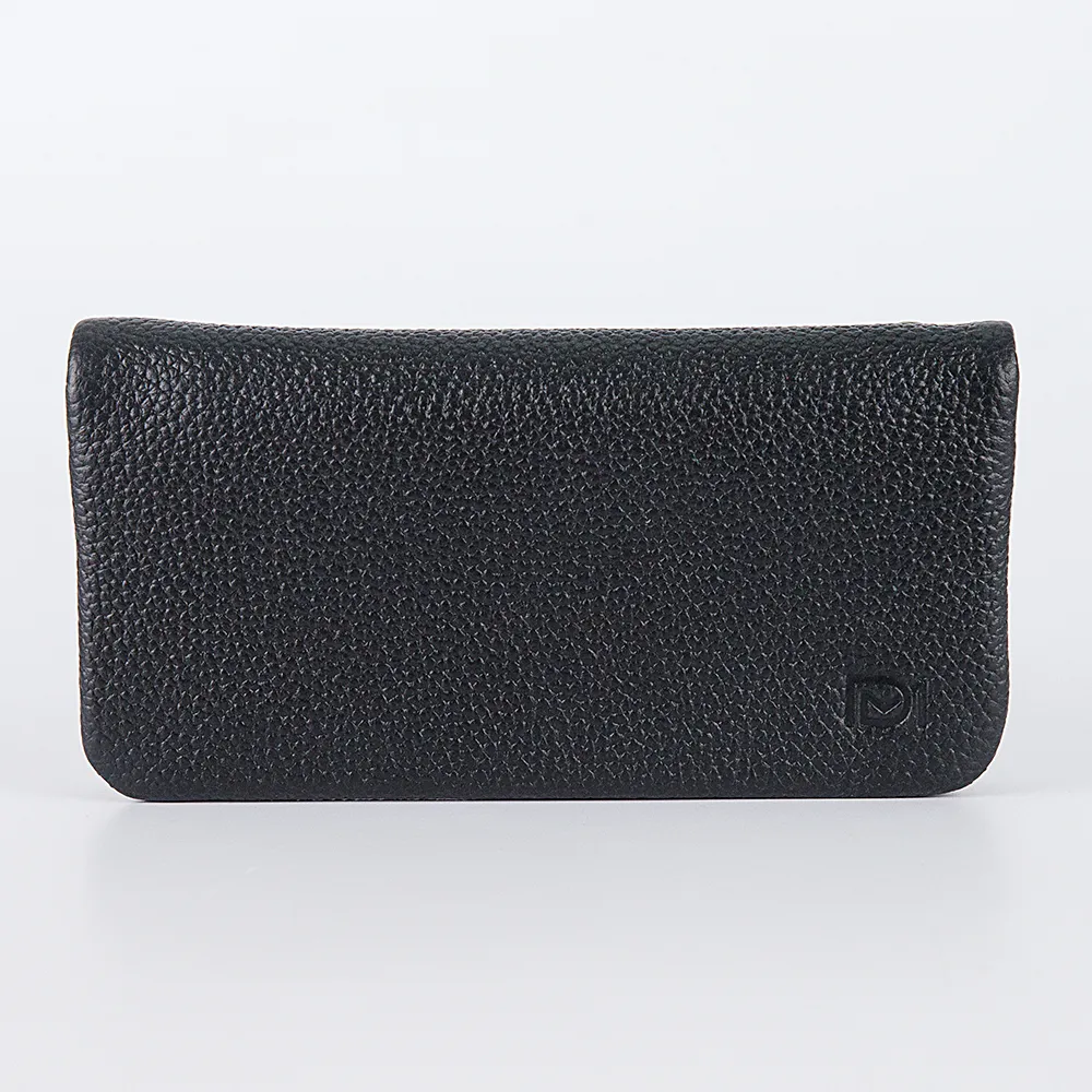 Кошелек коллекции «Бриенна» от торговой марки Domenico Morelli изготовлен из натуральной кожи черного цвета с яркими деталями красного цвета. Модель раскрывается книжкой, фиксируется кнопкой. Внутри: отделения для купюр, карманы для карт, карман-окошко. На задней стороне – карман на молнии.