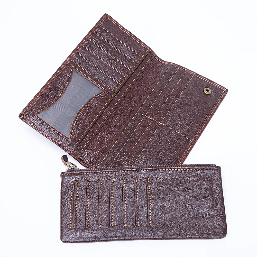 Кошелек от торговой марки Poshete из натуральной кожи коричневого цвета с контрастной отстрочкой. Модель вертикальной ориентации раскрывается книжкой. Внутри: карманы для карт, карма-окошко. Имеется съемный кошелек с карманом на молнии для монет и карманами для карт; крепится двумя кнопками.