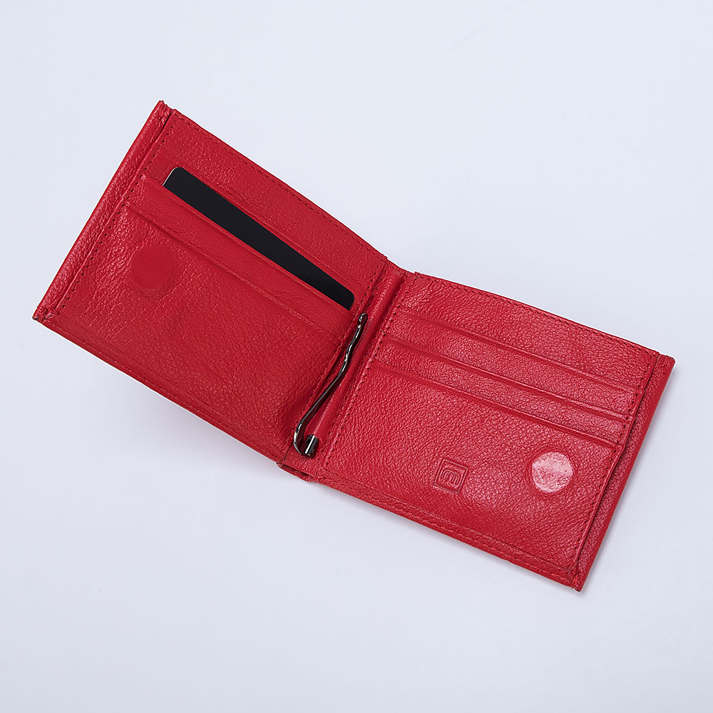 Зажим для денег с визитницей от бренда Poshete выполнен из натуральной кожи в красном цвете. Складывается пополам, не имеет застёжки, раскрывается книжкой, внутри два боковых кармашка, шесть кармашков для карточек и металлический зажим для купюр посередине. Снаружи карман на молнии для монет. Такой аксессуар дополнит дамскую сумочку и будет приятным и нужным подарком.