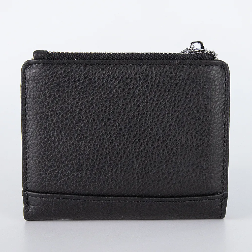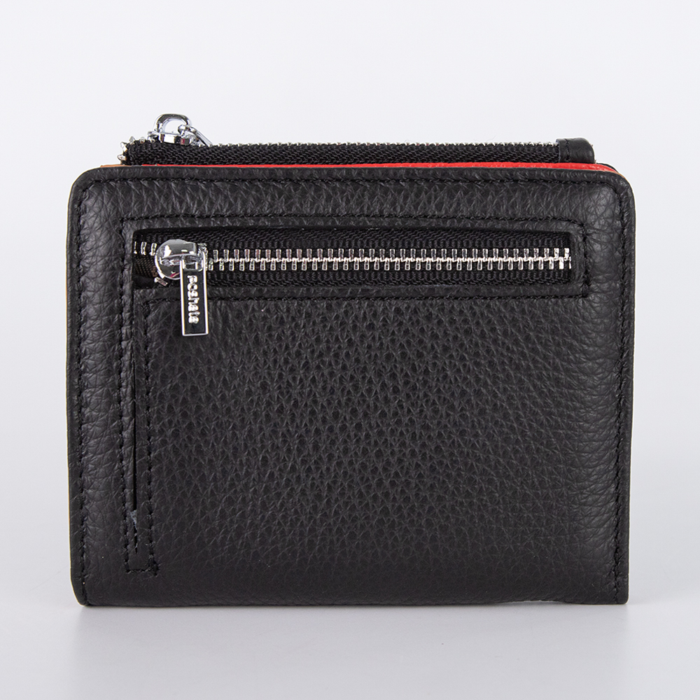 Кошелёк от торговой марки Poshete выполнен из натуральной кожи черного цвета. Модель с одним сложением, фиксируется скрытыми магнитами, раскрывается книжкой. Внутри: разноцветные карманы для купюр и пластиковых карт. Снаружи: боковой карман на молнии, на задней стороне – карман на молнии.