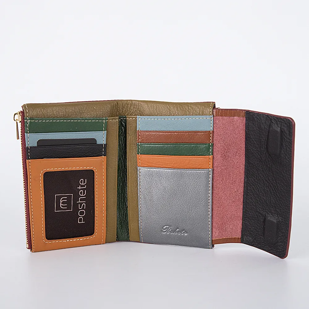 Оригинальный стильный кошелек от торговой марки Poshete изготовлен из натуральной кожи бордового цвета. Закрывается клапаном на скрытых магнитах. Модель с одним сложением. Внутри: отделение для купюр, карманы для карт, выполненные из кожи разного цвета, карман-окошко с сеточкой. Снаружи – отделение для монет на молнии.