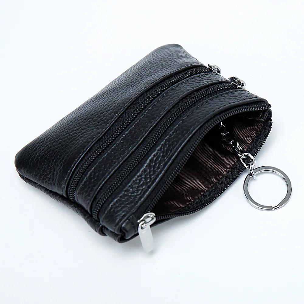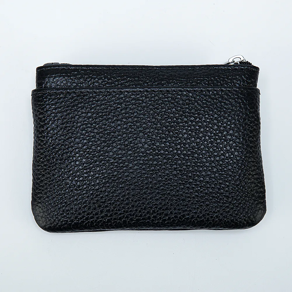 Симпатичная ключница-кошелёк Poshete выполнена из мягкой натуральной кожи, выходя из дома вы не забудете ключи взяв деньги или наоборот. Отделение с металлическим кольцом на цепочке для ключей застёгивается на молнию, снаружи три кармана для купюр в сложенном виде и монет, внутри текстильная подкладка. Модель компактная, чёрного цвета.