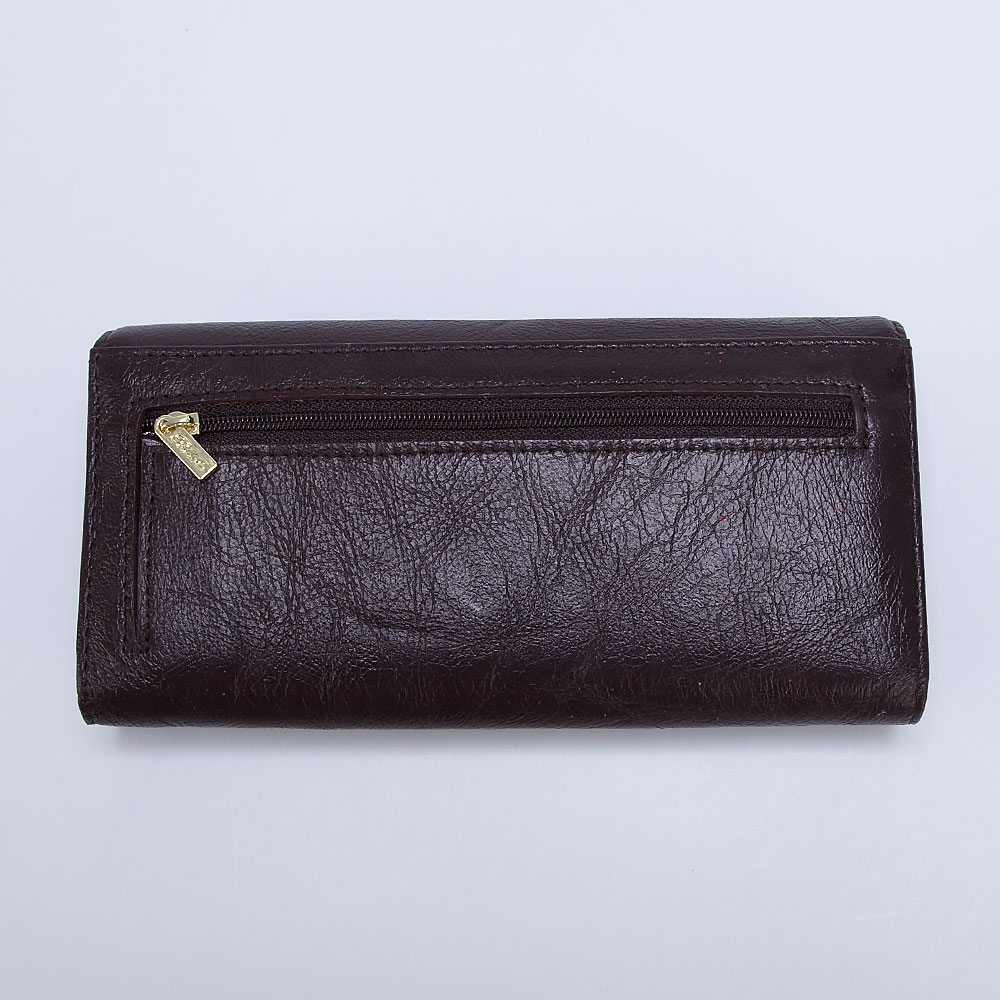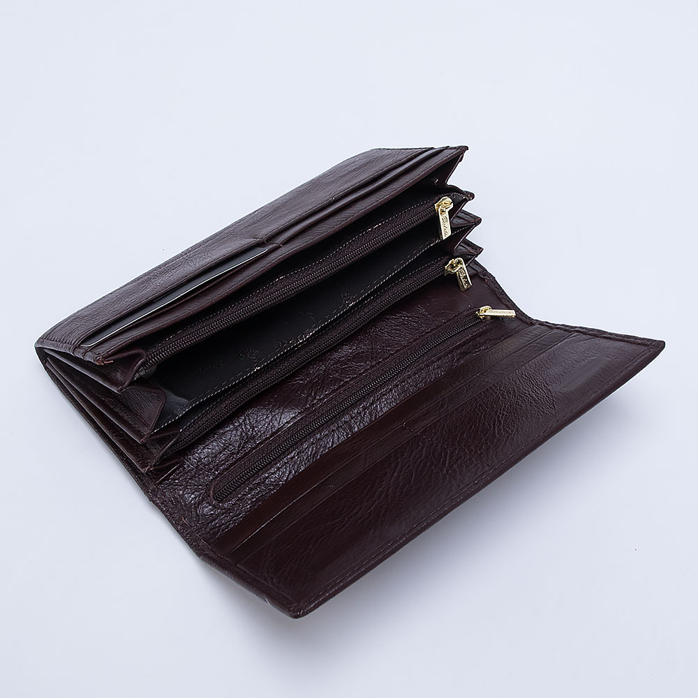 Классический женский кошелёк от Poshete выполнен в коричневом цвете из натуральной кожи с текстильной подкладкой. Кошелёк большой, купюры не придётся складывать. Закрывается клапаном на скрытые магниты. Внутри четыре отделения для купюр, три кармана на молнии, кармашки для пластиковых карт, на внешней стороне карман на молнии.