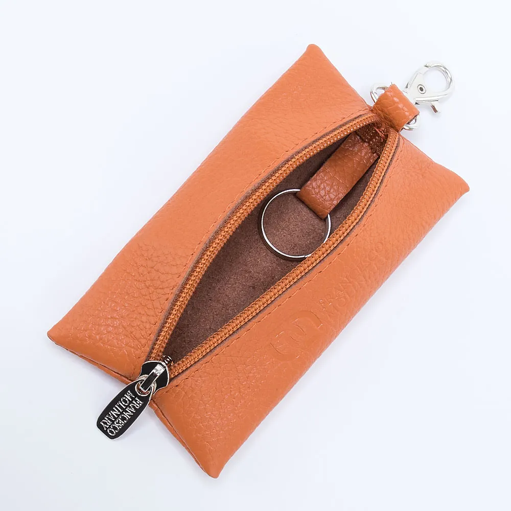 Ключница от торговой марки Francesco Molinary из натуральной кожи цвета dark camel. Модель с отделением на молнии. Внутри: без подкладки, кольцо для крепления ключей. Снаружи имеется карабин для крепления ключницы.